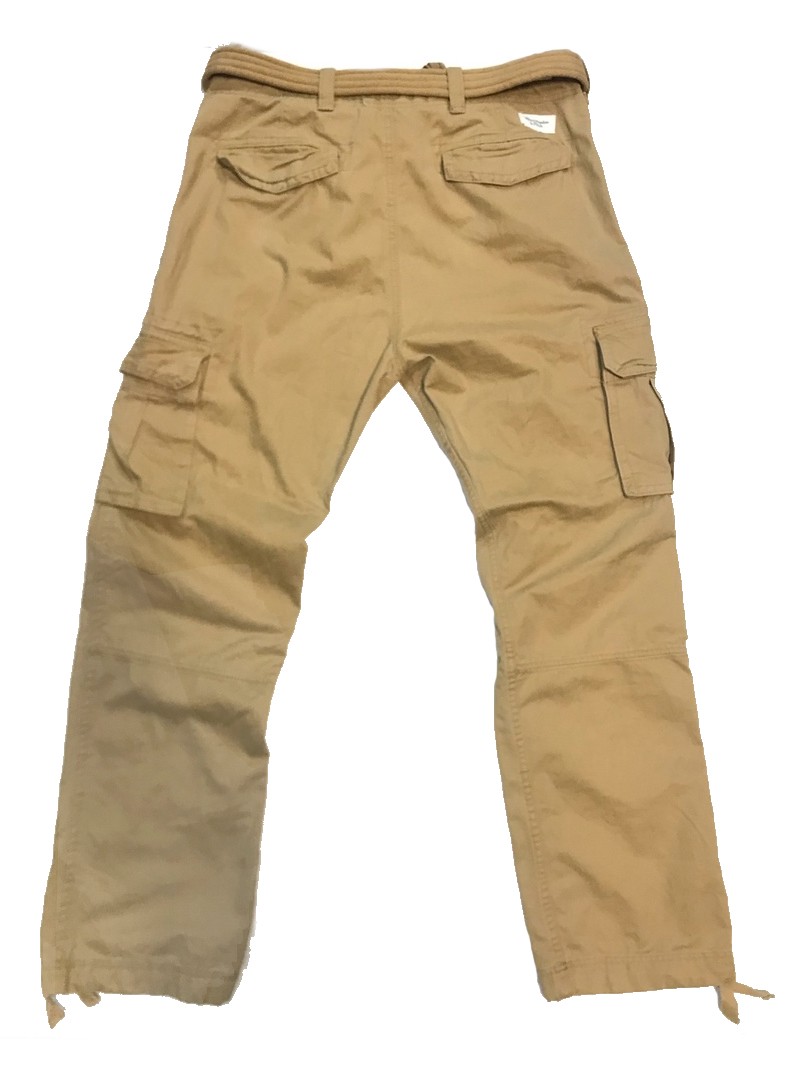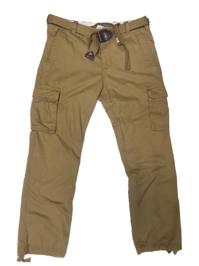 Брюки Cargo с ремнем, из мягкой хлопковой ткани.В верхней части брюк есть толстая шнуровка для утяжки, ширинка на молнии защищённая плотной тканью. Шесть карманов: два поясных глубоких кармана, два задних вшитых кармана прикрытыx тканью, два боковых накладных кармана закрывающихся при помощи кнопок, в нижней части брюк находится шуровка для утяжки.