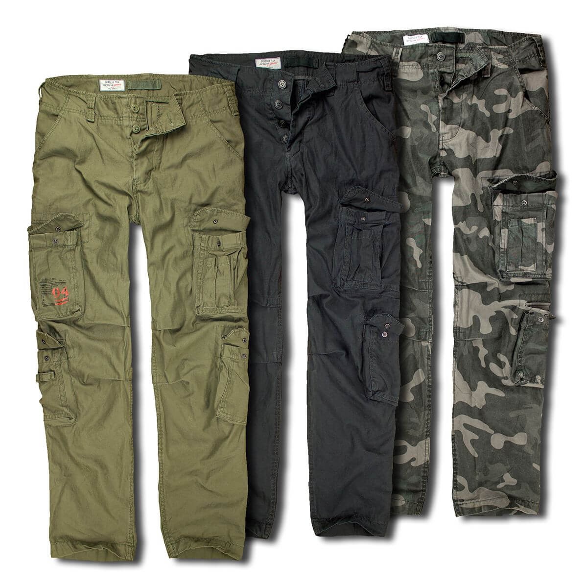Практичные и декоративные детали брюк были переняты от всем известного бестселлера SURPLUS — Airborne Trousers.