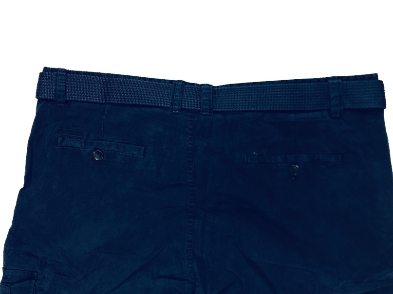 Шесть карманов: два поясных глубоких кармана, два задних вшитых кармана прикрытыx тканью, два боковых накладных кармана