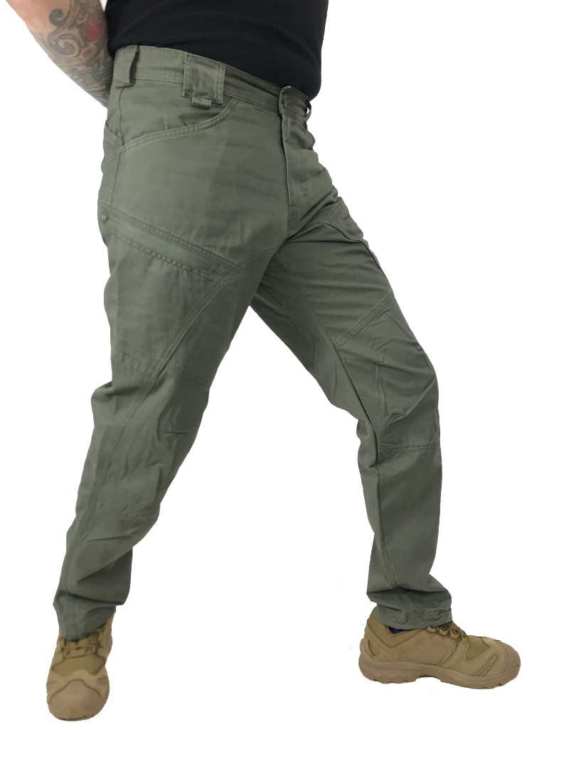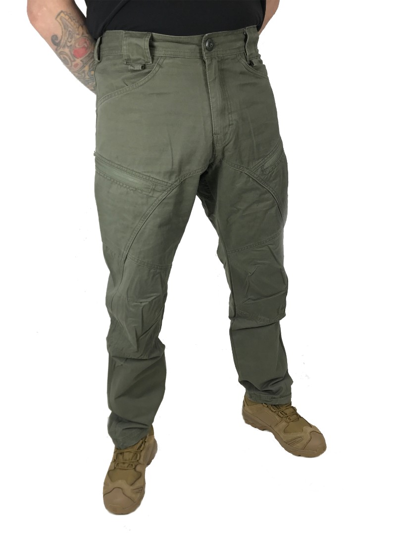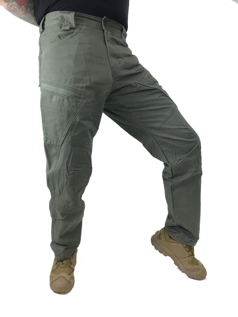 Брюки в виде "варёной" от Российкого производителя Pickap. Брюки имеют удобную посадку анатомический крой, для удобного использования. Паховая область дополнительно усилена тканью и двойным швом. На поясе расположены два больших передних кармана и два задних кармана больших кармана. Сбоку расположены два кармана на молнии и два кармана с клапаном. В нижней части брюк расположена утяжка на резинке