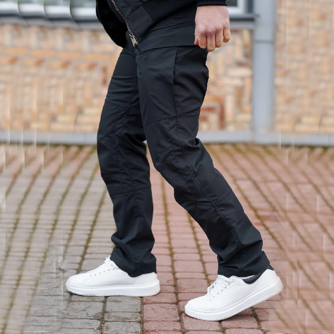 Брюки выполнены из ткани Rip Stop с механическим стретчем без использования эластана. За эластичность отвечает сверхпрочная нить T400, благодаря чему материал не теряет форму со временем, остается устойчивым к растяжению и сохраняет комфорт при активном движении.