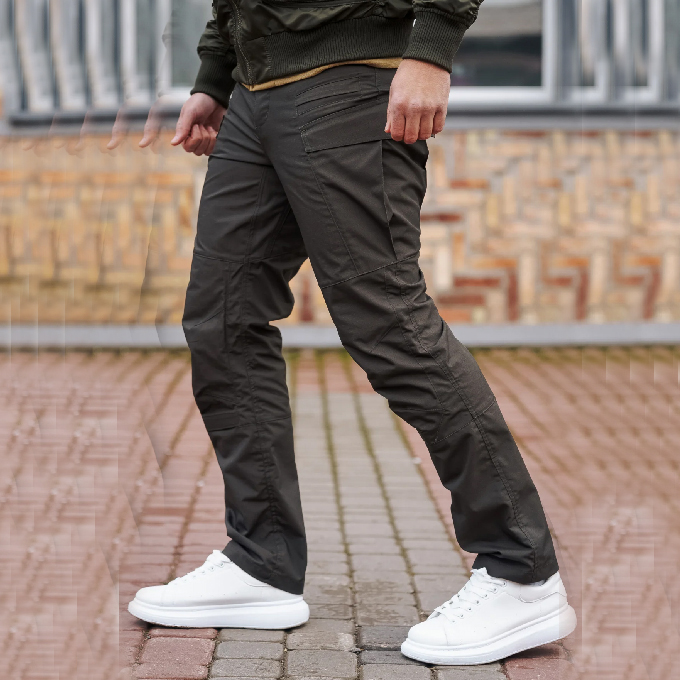 Брюки выполнены из ткани Rip Stop с механическим стретчем без использования эластана. За эластичность отвечает сверхпрочная нить T400, благодаря чему материал не теряет форму со временем, остается устойчивым к растяжению и сохраняет комфорт при активном движении.