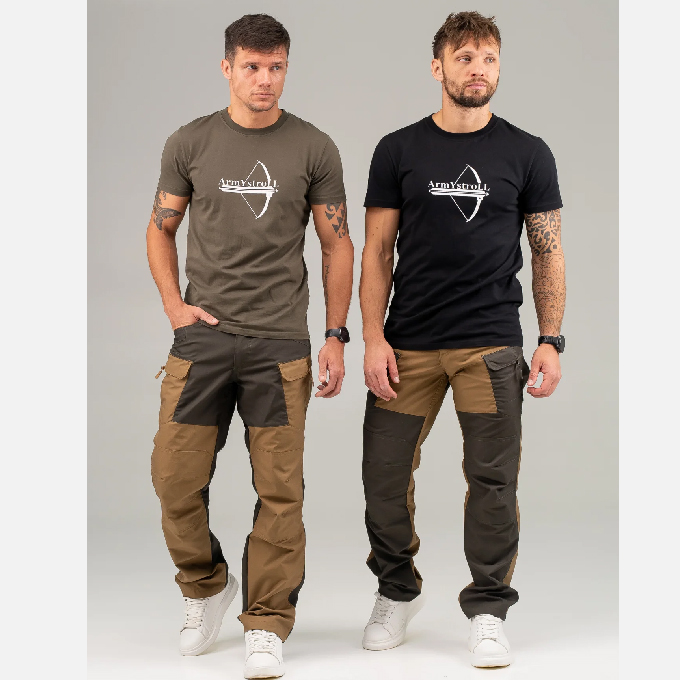 Брюки летние, комбинированные, в стиле милитари.