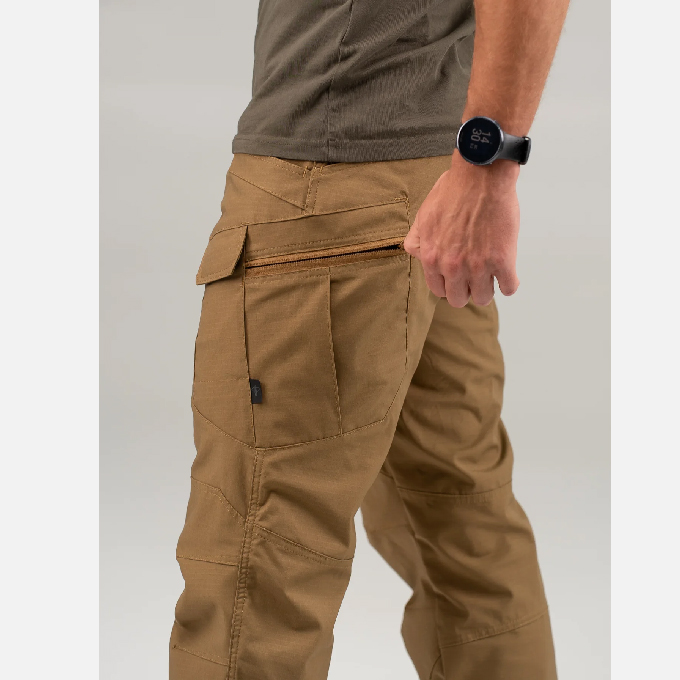 Брюки изготовлены из высококачественной смесовой ткани Rip-Stop, устойчивой к разрывам и истиранию. Сочетание хлопка, полиэстера и спандекса обеспечивает прочность, комфорт и легкую эластичность при движении.