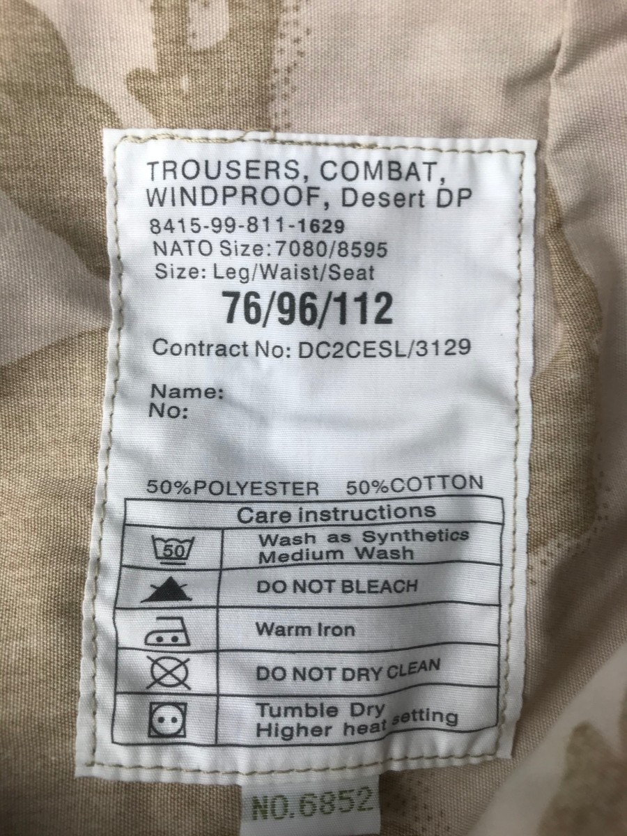 Максимальная ширина ремня, который можно носить с брюками составляет 8 см. В нижней части ног есть шнурок и липучка, которые позволяют быстро снять брюки.Брюки DPM Desert Windproof прекрасно зарекомендовали себя во время ведения боевых действий в Ираке и Афганистане.