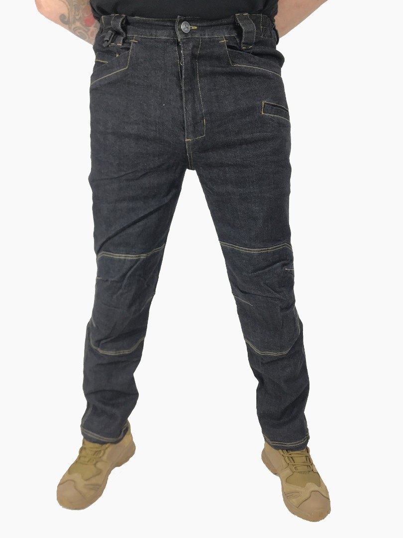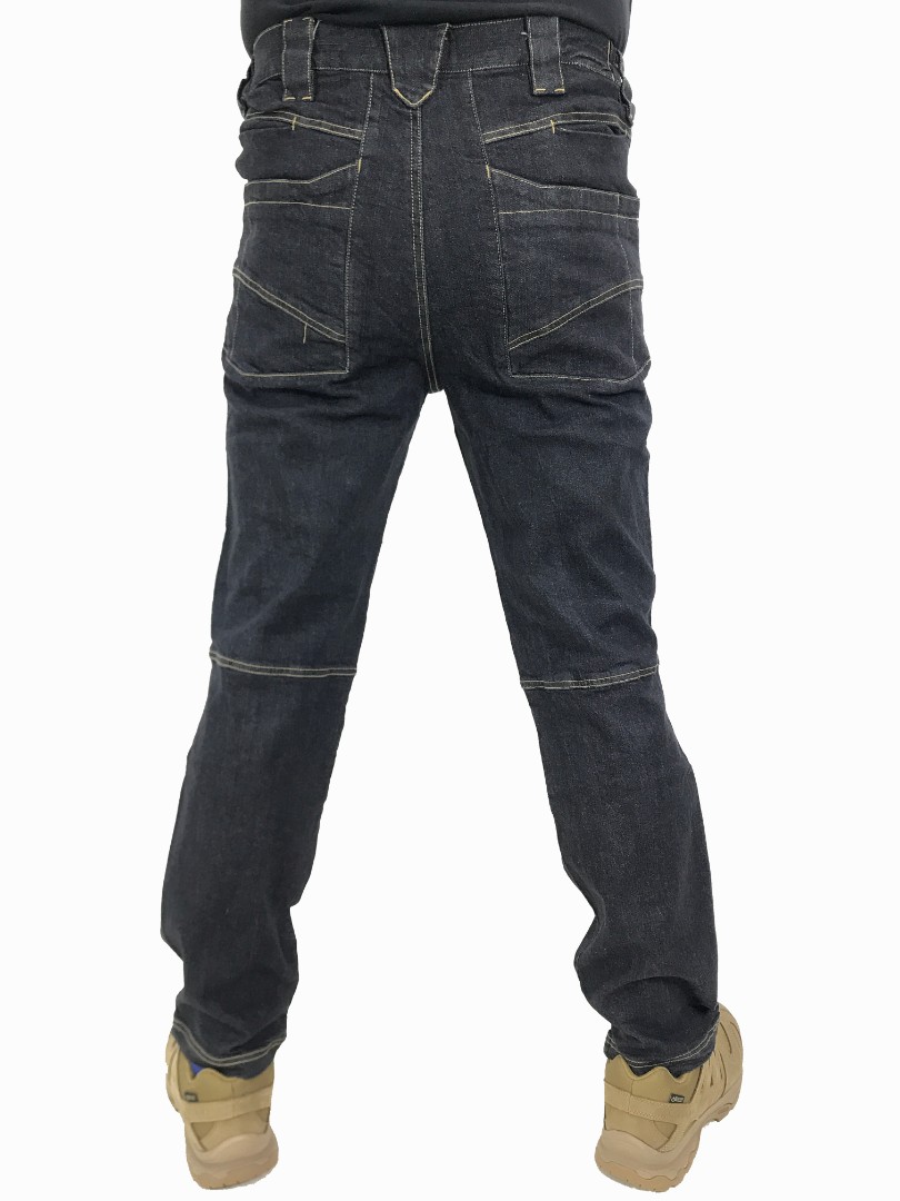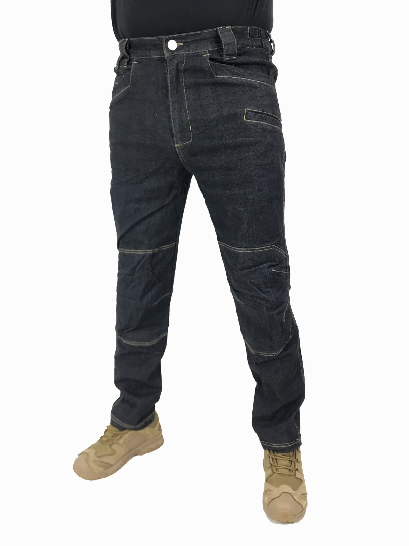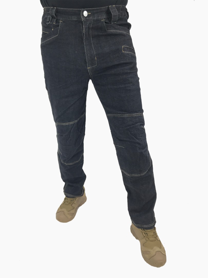 Стильные ,тактические джинсы из хлопкового материала с добавлением эластана для удобной носки.Широкие шлейки для ремня придают брюкам дополнительный дизайн.По бокам на поясе расположена резинка для удобства подгонки размера.Области колен прошиты тканью ,что придаёт брюкам непревзойдённый дизайн.Передние карманы удобны для доступа к мелочам,в правом кармане есть дополнительный небольшой карман ,который например подойдёт для ношения складного ножа.В левой части под большим карманом расположен расположен небольшой карман.На задней части брюк расположены 4 кармана.