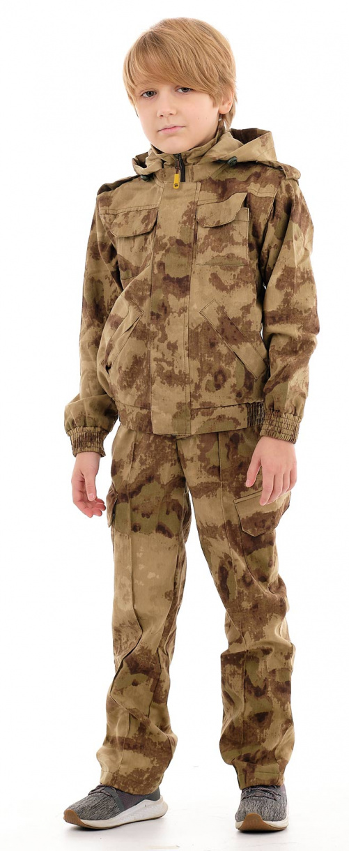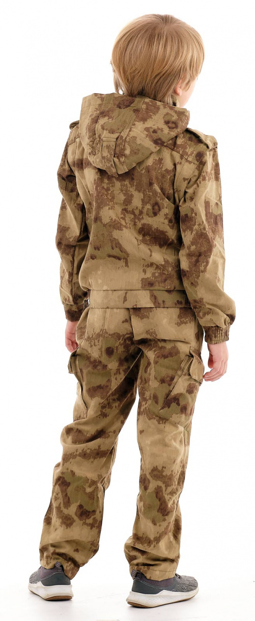 Многофункциональный костюм-трансформер «Боец» (ТМ «Маугли») от Novatex. Куртка с застежкой-молнией и ветрозащитной планкой. Рукава и капюшон отстегиваются. Два объемных накладных кармана с клапаном на кнопке и два прорезных кармана. Брюки прямые, пояс брюк с эластичной резинкой и шлевками под ремень.