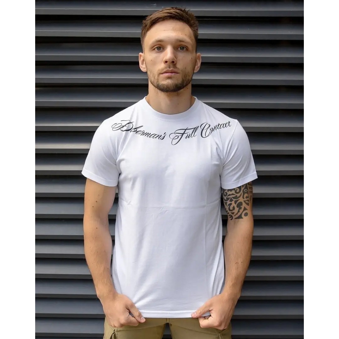Модель Full Contact TS159. Футболка из высококачественного хлопка с короткими рукавами. На шее надпись Doberman's Full Contact в виде дуги. На спине крупный двухцветный принт: логотип Full Contact в окружении готических орнаментов. Графика проходит через швы обоих рукавов. Сзади на шее небольшая надпись Fighting Rage (Боевая ярость). Футболка стандартного мужского кроя. Красные детали в виде внутренней складки и язычка сбоку с логотипом бренда. Doberman's Aggressive - польский бренд, основанный в 2002 году, выпускающий мужскую и женскую одежду, отличающуюся уникальным смелым дизайном. Бренд сотрудничает с лучшими графическими дизайнерами, которые следят за тем, чтобы дизайн одежды под брендом Doberman's Aggressive был единственным в своем роде и предлагает продукцию высочайшего качества. Принты очень долговечны, не выцветают и не отклеиваются после стирки. Нанесение рисунка на всю продукцию под брендом Doberman's Aggressive, производится методом «Silk Screen Printing» или более знакомое всем название Шелкография. Толщина красочного слоя при таком методе нанесения рисунка может колебаться в пределах от 10 до 100 мкм, что является очень плотным покрытием и обеспечивает эффект объема и монолитности изображения. Как должное, в процессе эксплуатации изделий с такими принтами (носке,уходе), проявляется эффект состаривания, допускается появление трещин к уже имеющимся, задуманных автором, при изготовлении макета. Принты Doberman’s Aggressive дольше других держатся на тканях, сохраняя исходный образ рисунка, что продлевает срок годности при их эксплуатации.