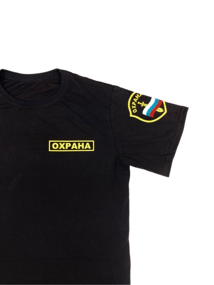 Мужская футболка из 100% хлопка с принтом «ОХРАНА» — комфортная базовая вещь для повседневной носки. Мягкий хлопковый материал обеспечивает отличную воздухопроницаемость и удобство в течение всего дня. Классический прямой крой подходит для любого типа фигуры.