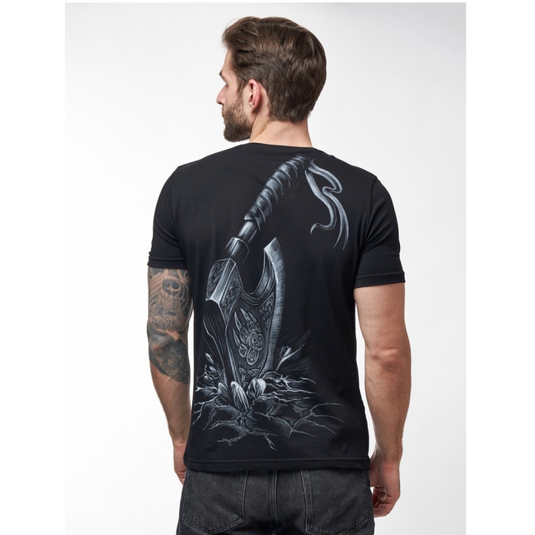 Мужская футболка с принтом. Станет эффектной деталью мужчины и подростка вписываются в повседневные образы и легко комбинируются с разной одеждой. Молодежная городской стиль, подойдет для дома, спорта и фитнеса, также для повседневной носки на улице. Черная футболки с рисунком фирменная от бренда STELLA ST : Волк-вурдалак от старославянского волк-оборотень. В каждом из нас живёте мифическое животное. Главное обуздать и победить его в себе. На спине топор правды. Вписывается в популярные милитари стили, станет лучшим подарком. Майка мужская в классическом спортивном стиле, не препятствует воздухообмену и позволяет коже дышать. Такие футболки по достоинству оценит любое мужчины. Чтобы изделие сидело как оверсайз - возьмите на два размера больше. Она сшита из Турецкого приятного телу, мягкого трикотажа хлопка 95% лайкра 5% (ткань - кулирная гладь качество пенье), Футболка мужская в классическом спортивном стиле, не препятствует воздухообмену и позволяет коже дышать, краски устойчивы к стирке. Дышащая прочная ткань, приятна к телу не теряющий форму и изначальный вид после стирки. Футболка не вызывает сложностей в уходе, прослужит максимально длительный срок. Славянская одежда военная тактическая c рунами