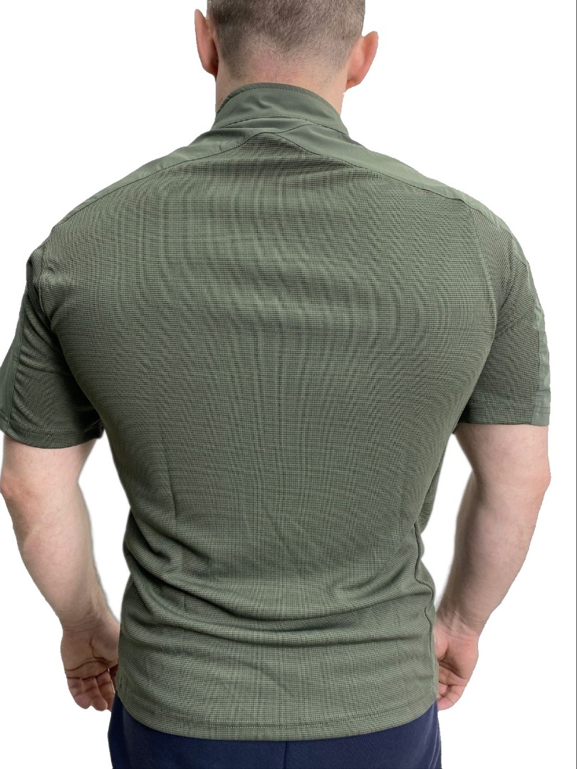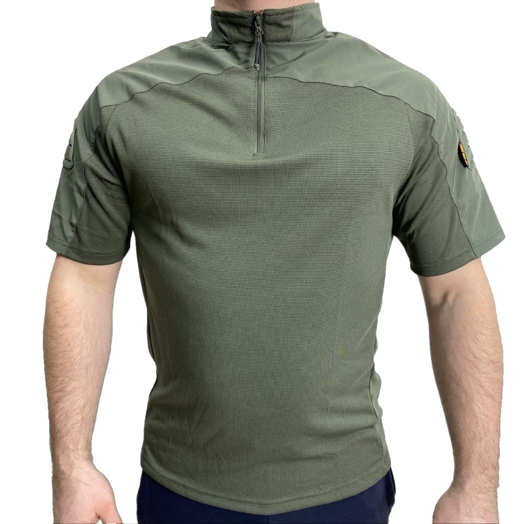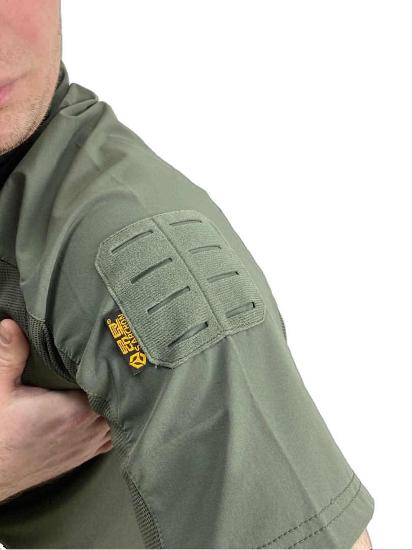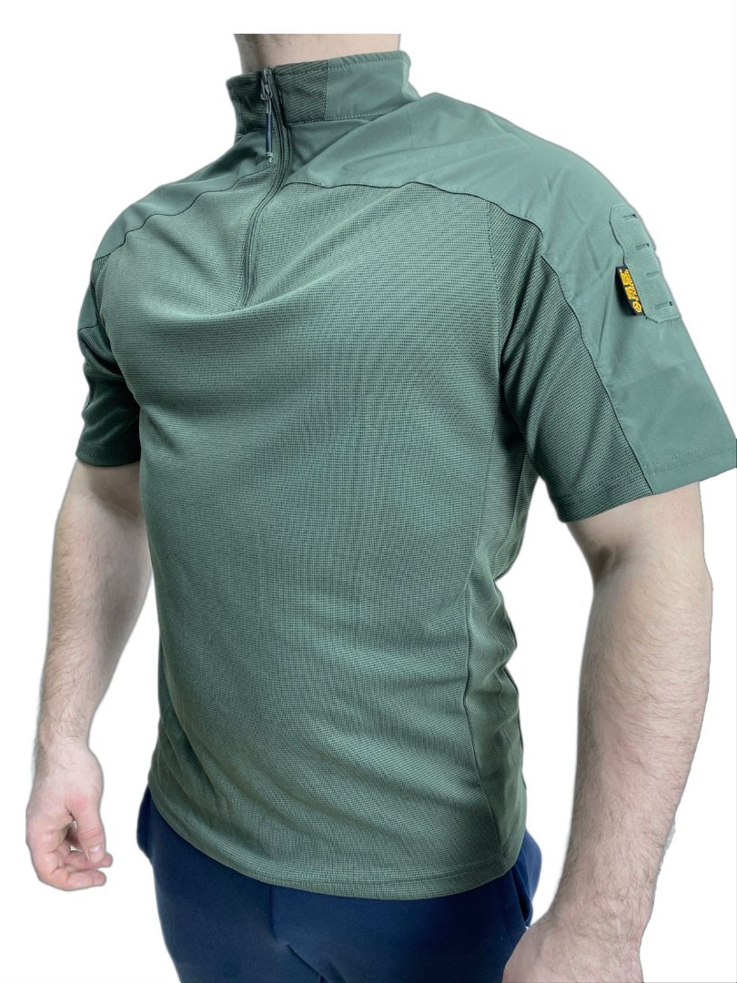 Тактическая футболка из синтетической и дышащей ткани Coolmax. Верхняя часть выполнена из нейлона, основная часть футболки состоит из полиэстера и спандекса. На рукавах расположены панели велкро для крепления знаков отличия. Футболка обладает хорошей эластичностью за счёт спандекса.