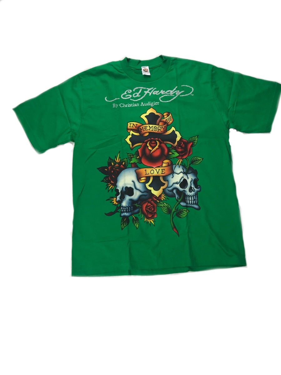 Футболка Ed-Hardy зеленая с принтом