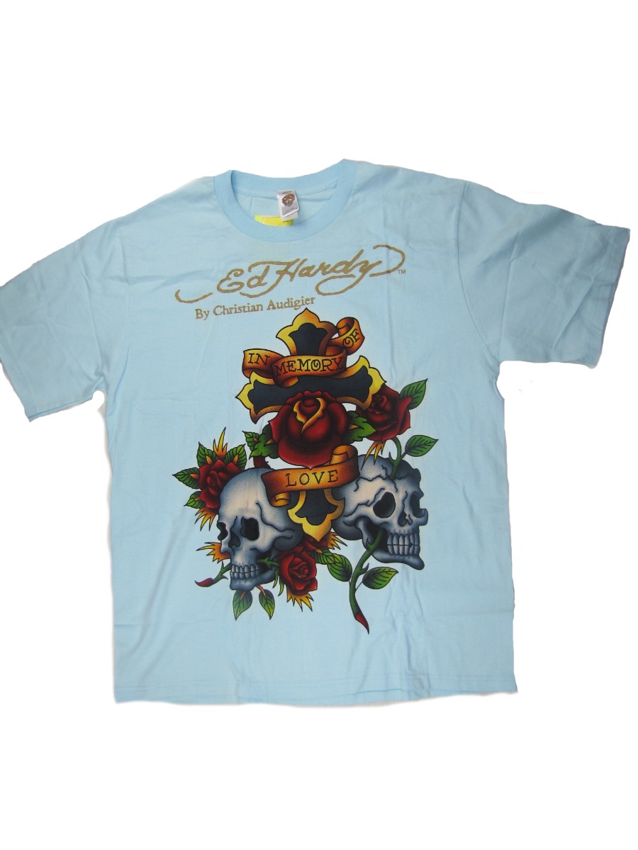 Футболка Ed-Hardy голубая с принтом