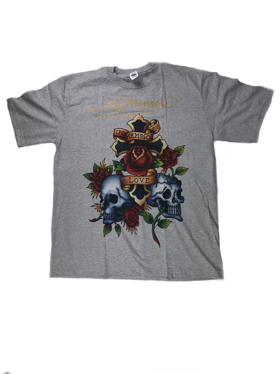 Футболка Ed-Hardy светло-серая с принтом