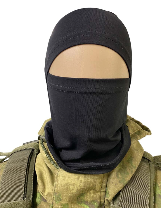 Черная балаклава из хлопчатобумажного материала разработана для защиты головы и лица от пыли, грязи и ветра. Ее минималистичный дизайн позволяет использовать аксессуар в различных условиях — от городских до тактических операций. Ткань дышащая и мягкая, не вызывает раздражений при длительном ношении. Балаклава обеспечивает хороший уровень маскировки и может быть использована в повседневной жизни или на природе.