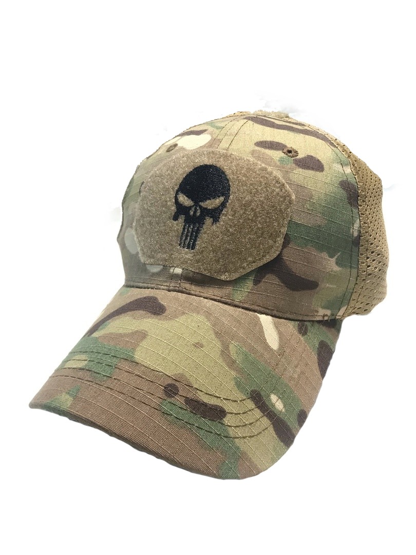 Кепка в камуфляже мультикам с эмблемой и липучкой велкро спереди. Часть кепки состоит из сетки, размер регулируется с помощью липучки велкро