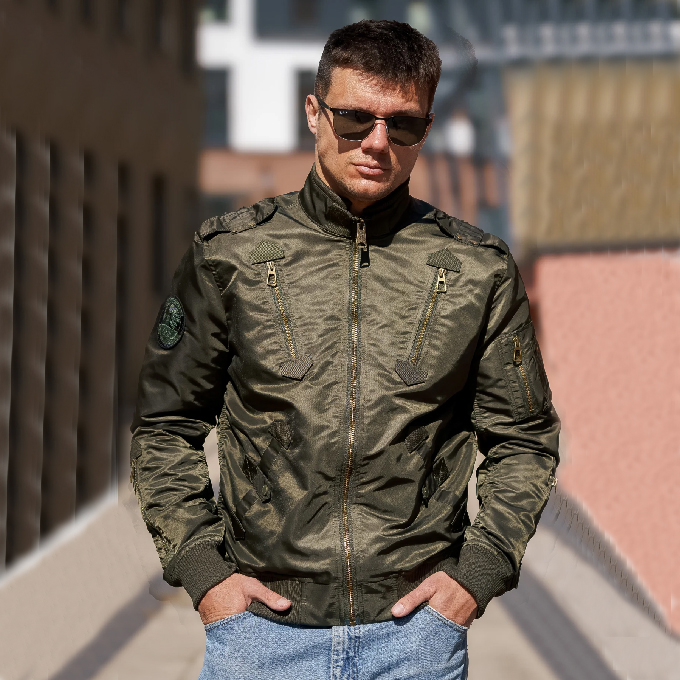 Куртка бомбер PE-16 Olive Army Stroll подходит для уверенных мужчин, которые ценят брутальность и сдержанный стиль.