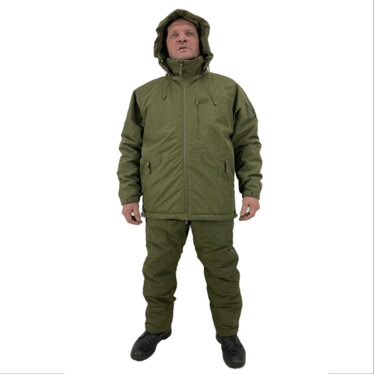 Зимний тактический костюм в цвете олива спроектирован как внешний защитный 7-й слой, который надевается поверх утепляющих уровней экипировки. Конструкция из синтетической ткани с утеплителем обеспечивает защиту от внешних воздействий и сохраняет мобильность при работе в снаряжении. Продуманная система карманов, регулировок и быстрый доступ к надеванию делают комплект удобным для боевых задач, полевых выходов, охоты и рыбалки.