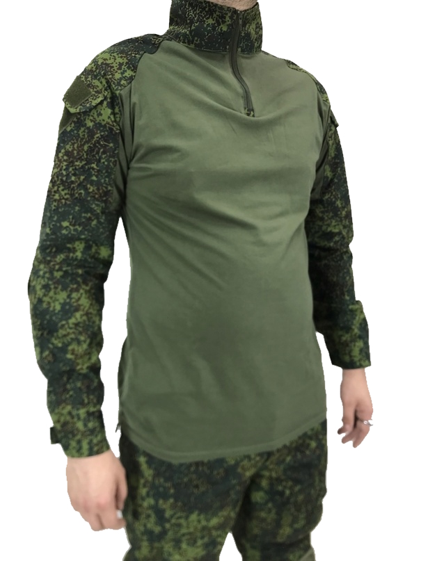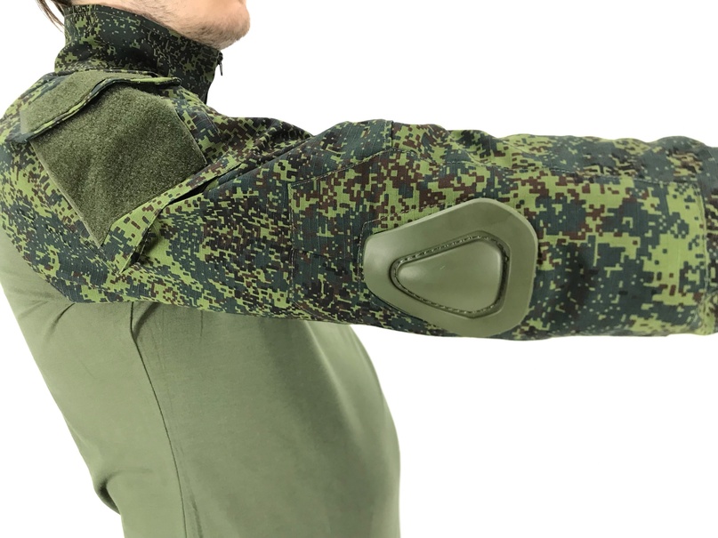 Комплект состоит из кофты (боевой рубахи) и штанов.На передней части штанин расположены наколенники, которые устанавливаются в специальные отсеки. При необходимости наколенники можно снять. Они состоят из двух частей: внутренняя поверхность сделана из плотного, мягкого материала; внешняя – из прочного пластика. В коленях брюки регулируются по обхвату велкро-липучкой.