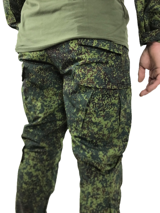 Брюки прямые, застёгиваются на молнию, фиксируются липучкой липучкой. Для фиксации штанов на талии есть возможность установки поясного ремня за счет нашитых шлевок.