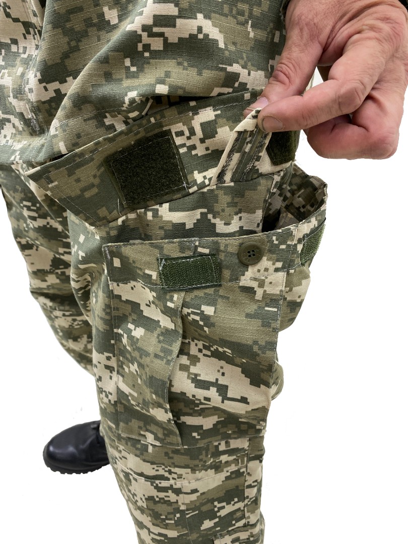 Комплект состоит из куртки и брюк и изготовлен в соответствии с военными стандартами.