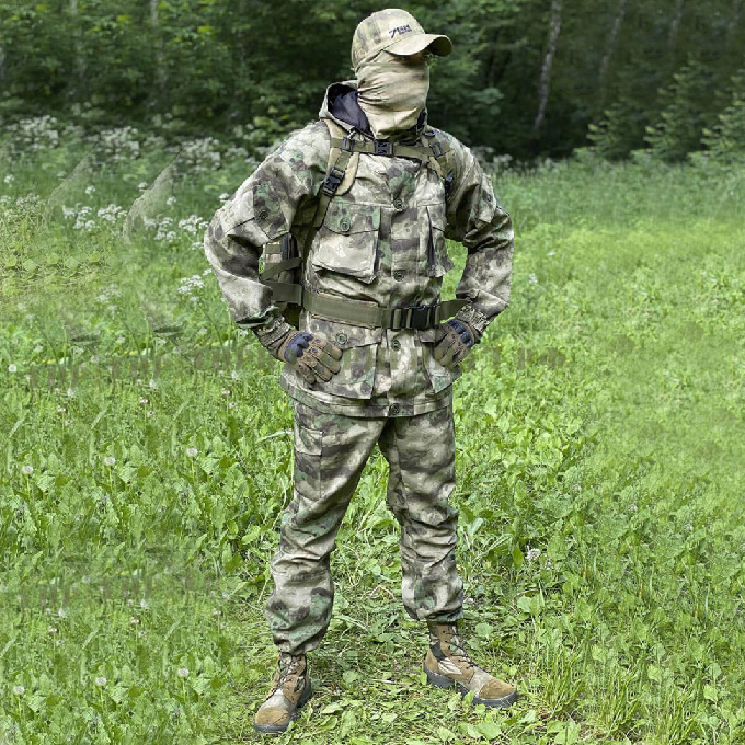 Костюм выполнен из ткани Rip-Stop с армированными нитями, создающими прочный «каркас». Материал устойчив к разрывам и истиранию, при этом остается легким и удобным для длительного ношения.