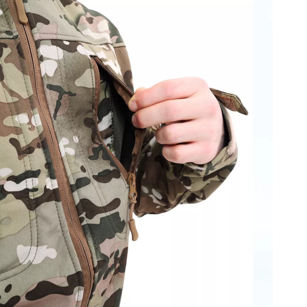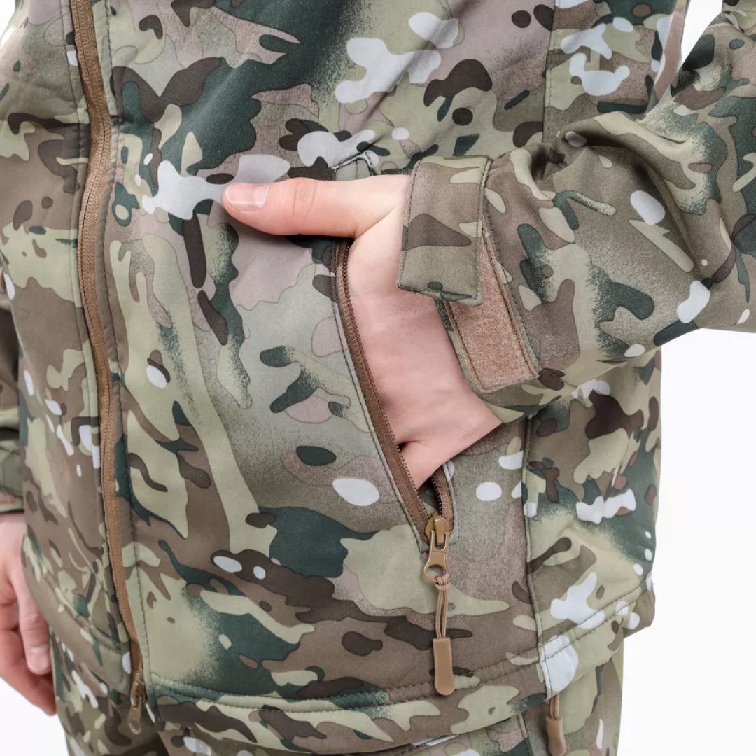 Костюм Soft Shell ESDY Мультикам 4К — это современная экипировка, сочетающая защиту от непогоды, комфорт и продуманную