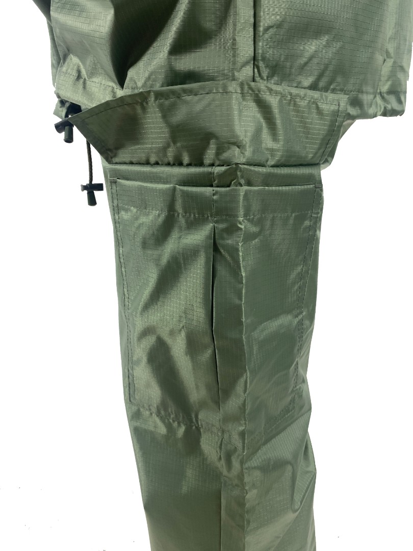 Куртка и брюки складываются в компактный чехол, что делает костюм идеальным для рюкзака, автомобиля или похода.