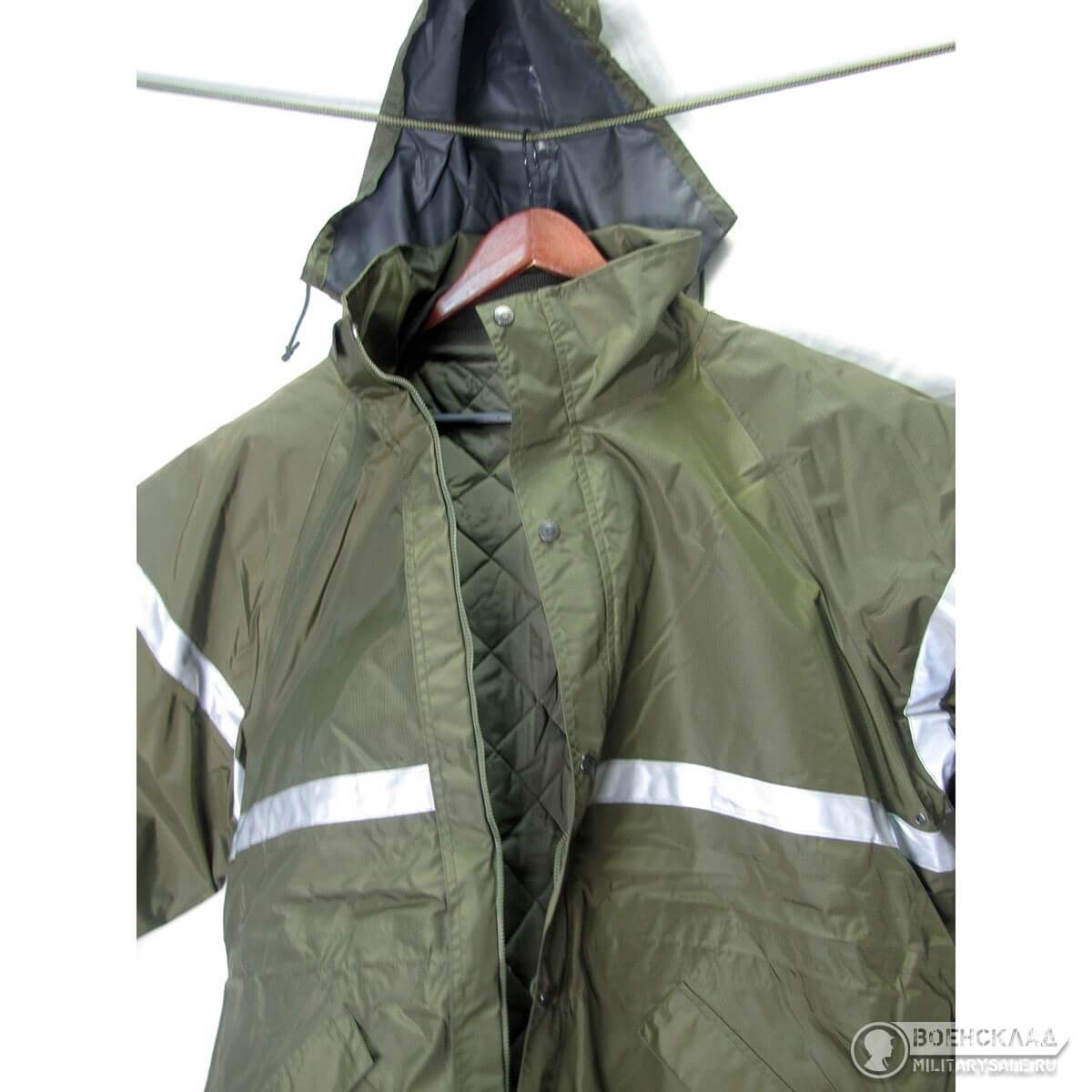 На куртке два внутренних кармана с внешними защитными клапанами, застежка на молнию и на кнопки, а также капюшон, который убирается в воротник.