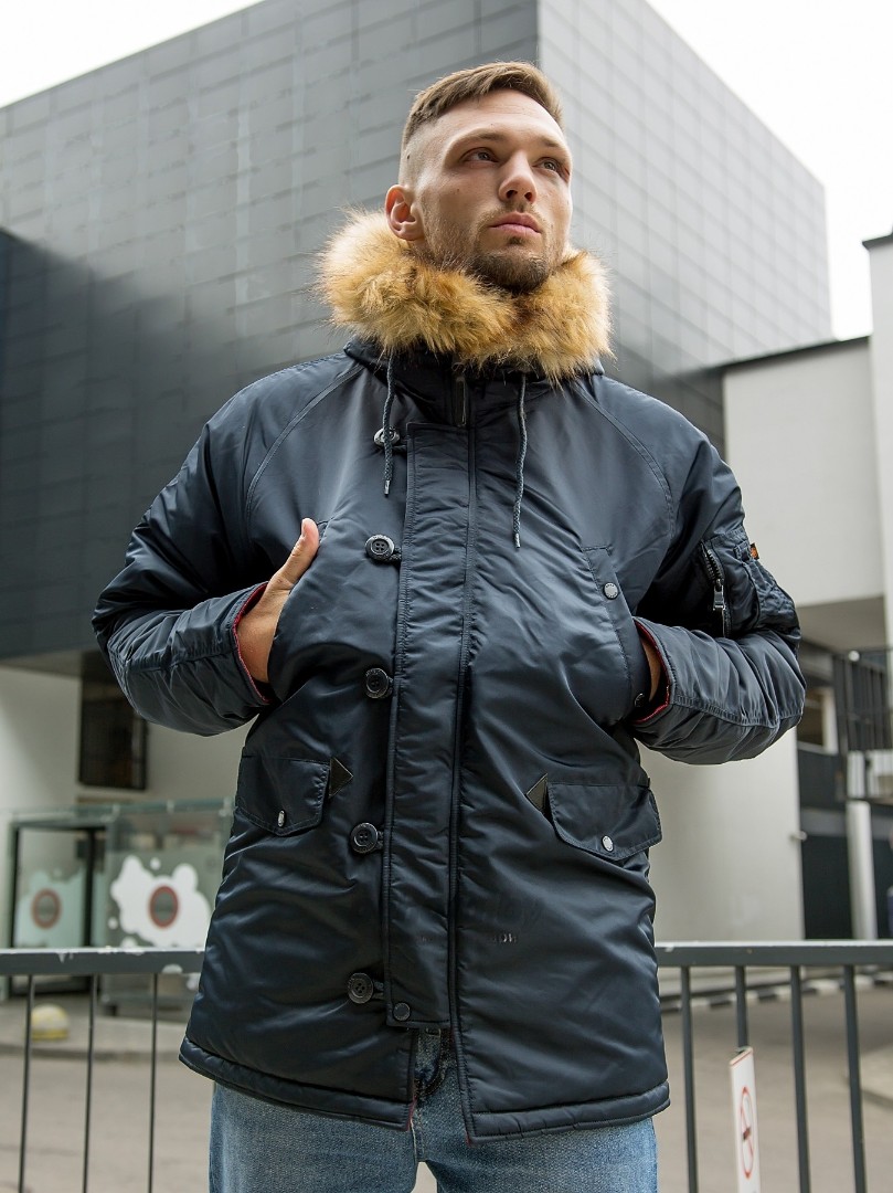 Куртка оснащена съемным капюшоном с искусственным мехом японского производства, который надежно защищает голову и лицо от ветра