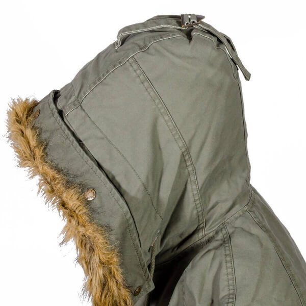 - Отделка капюшона из искусственного меха пристегивается на клепки - при желании её можно отстегнуть.