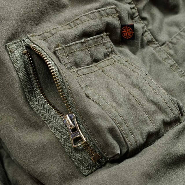 - Также есть два боковых кармана на клапанах и карман на рукаве для мелочей, закрывающийся на замок-молнию.