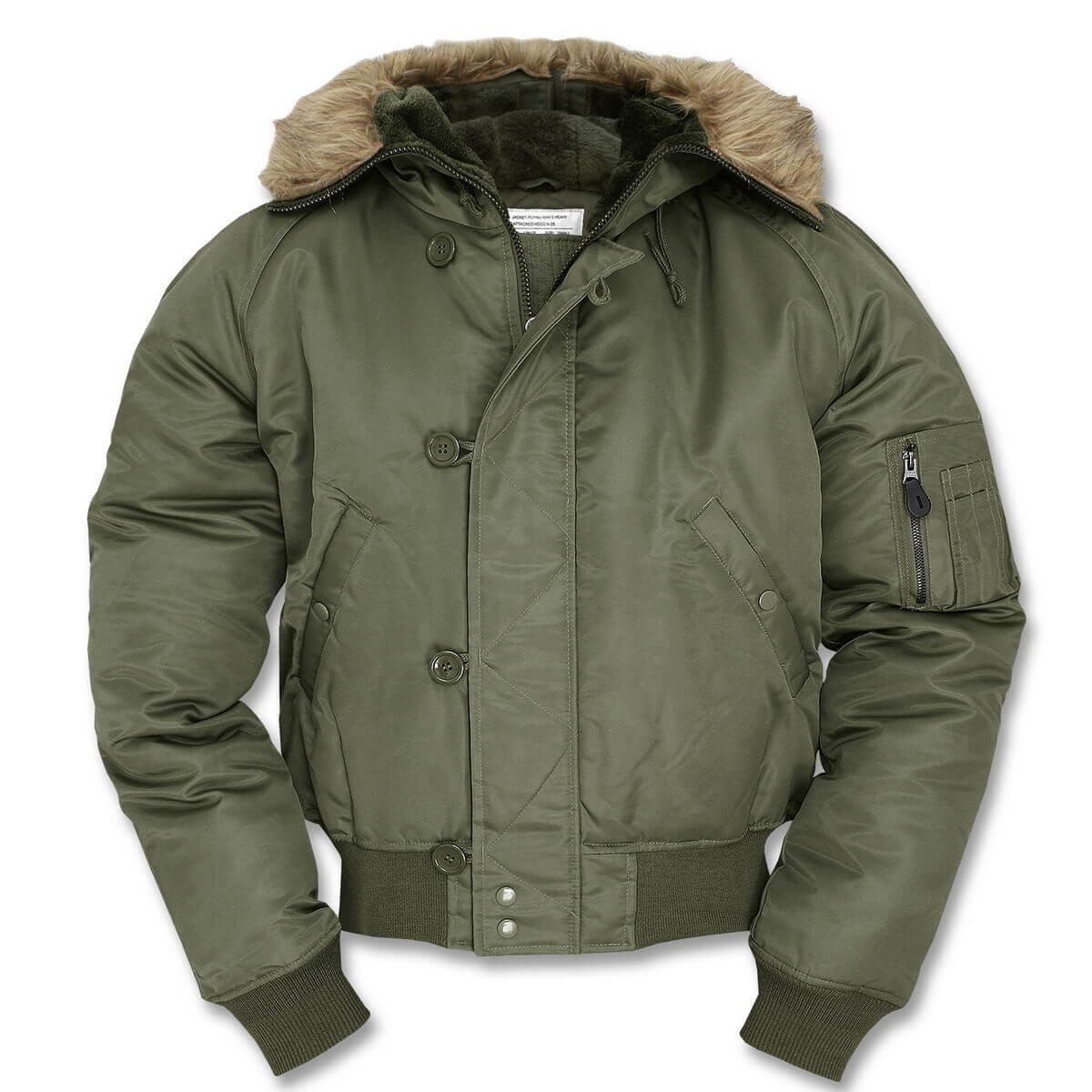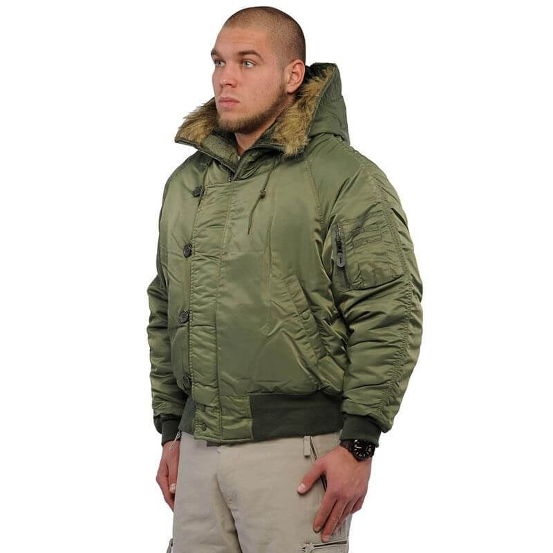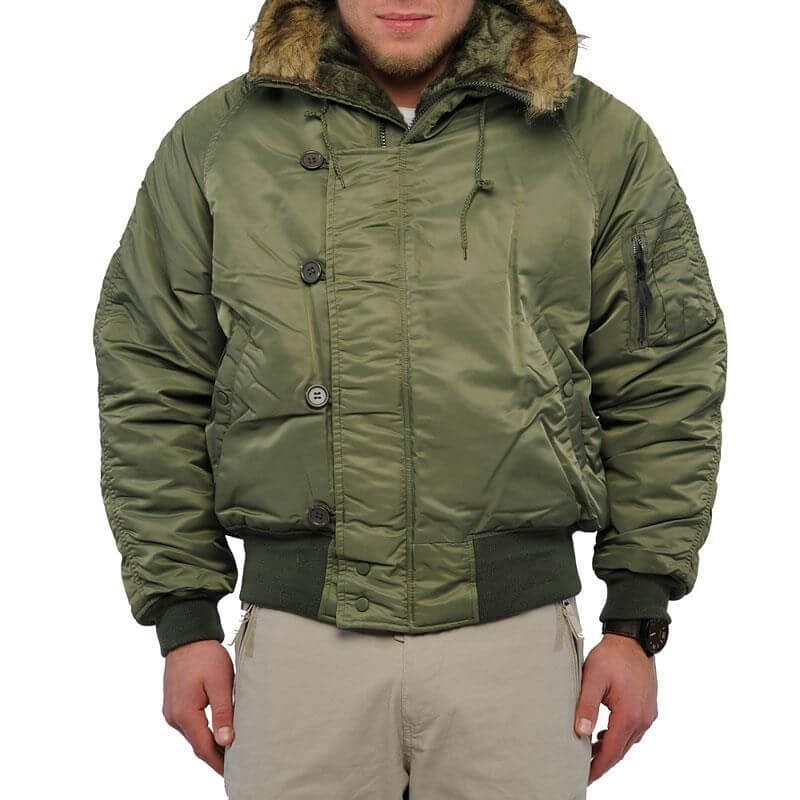 Куртка N2B – одна из самых популярных армейских летных моделей. Этот бомбер часто причисляют к паркам «Аляска» за тёплый подклад и непродуваемую молнию. Влагоотталкивающий материал не даст хозяину такой одежды промокнуть ни в снег, ни в холодный дождь.