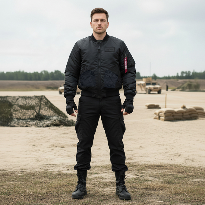 Классические эластичные манжеты и пояс обеспечивают плотную посадку, защищают от ветра и подчеркивают традиционный силуэт лётного бомбера.