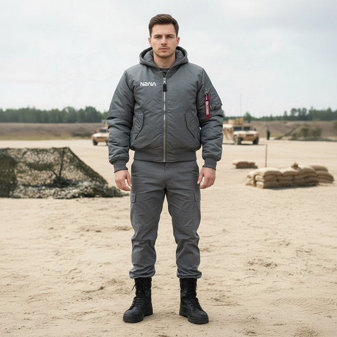 Стильный демисезонный бомбер ALPHA L-2B HOODED NASA II FLTKT GUNMETAL— комфорт и практичность на каждый день