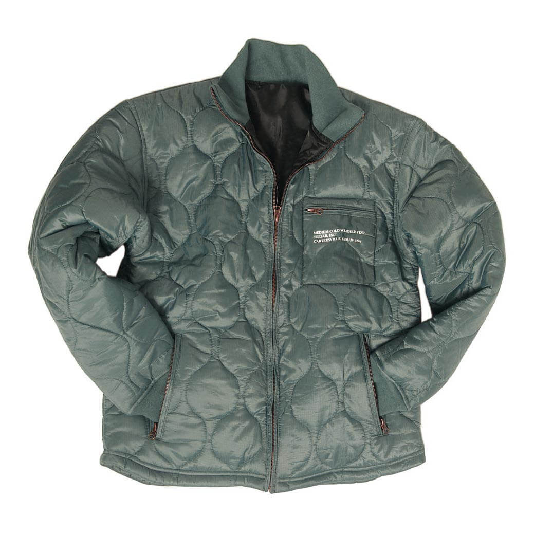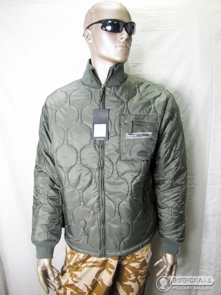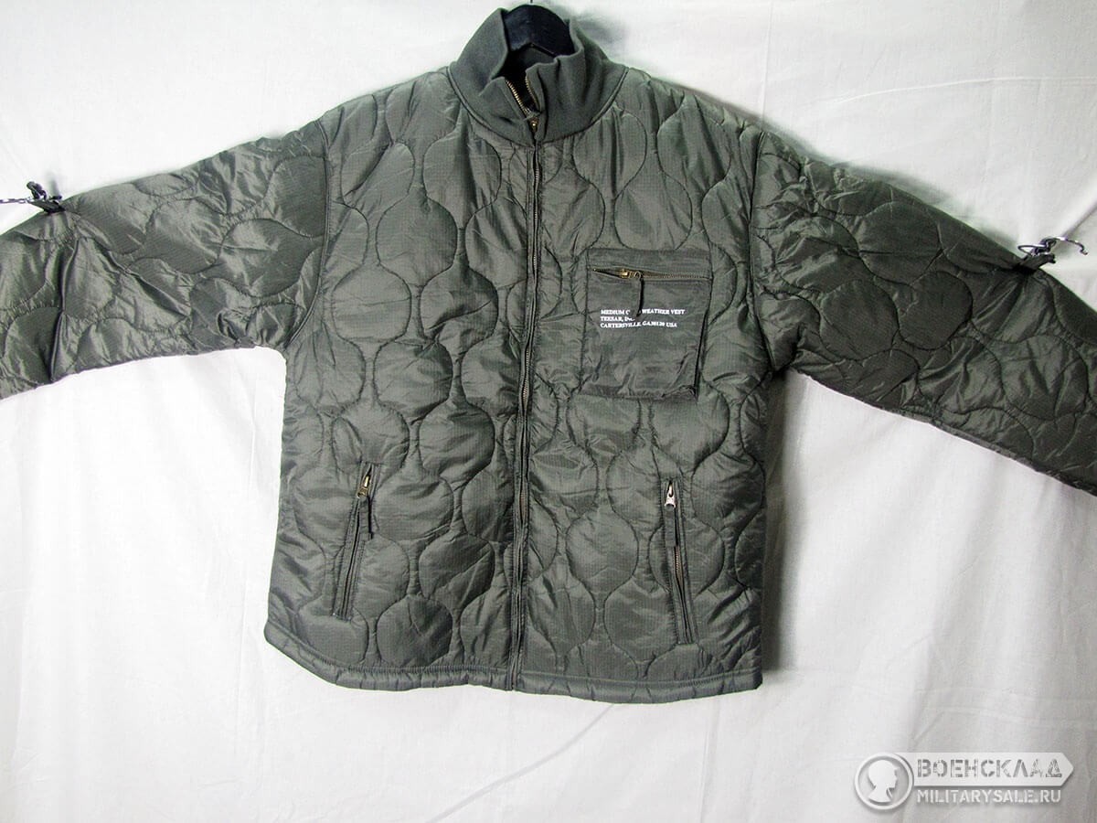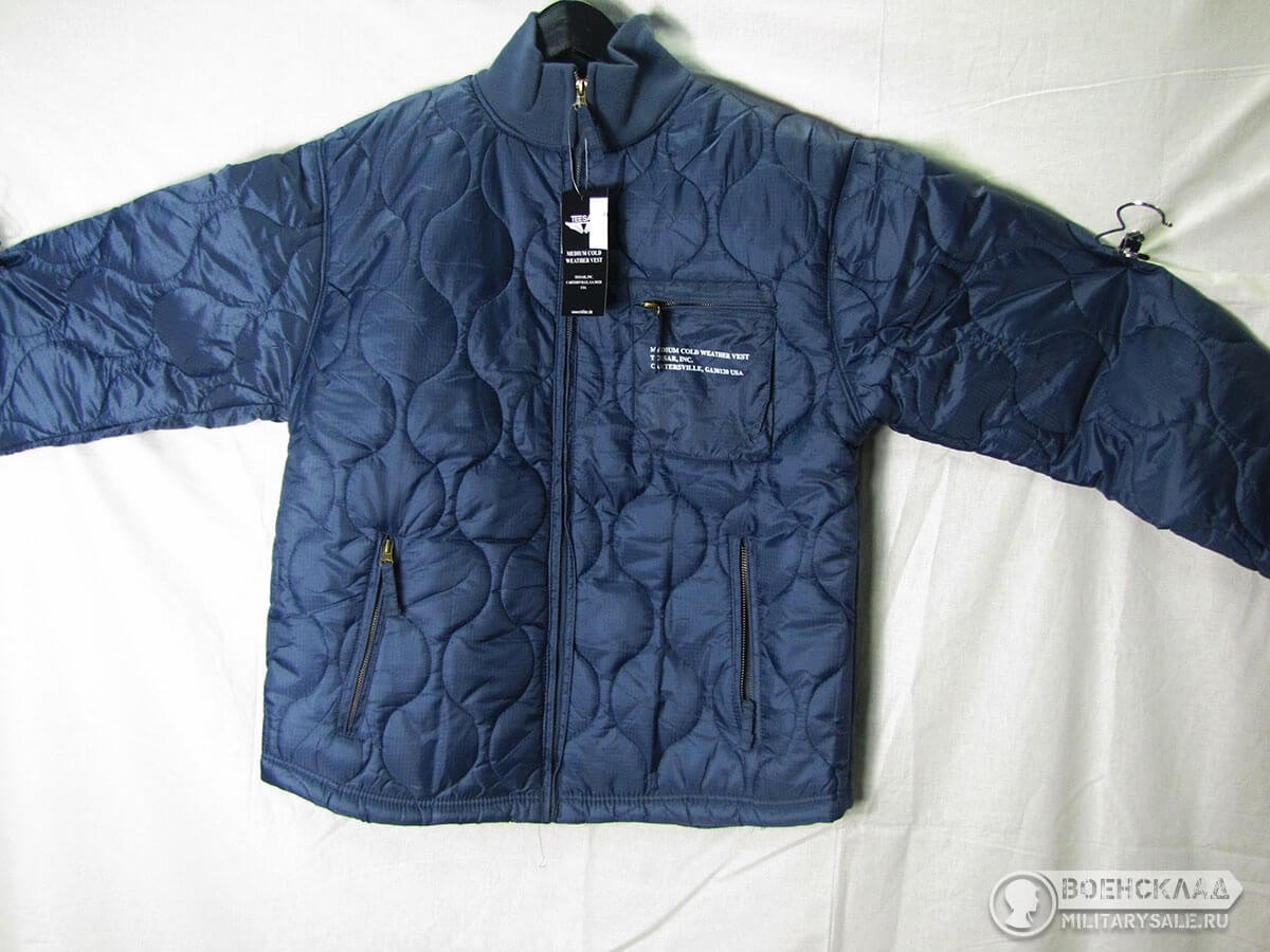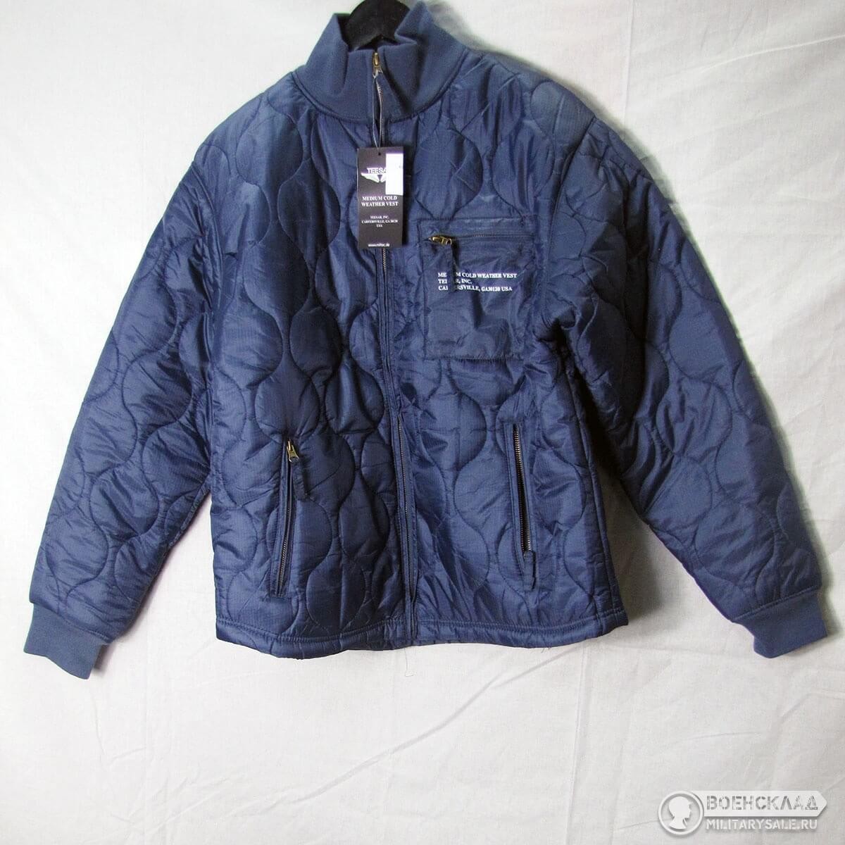 Массивная передняя молния, трикотажные манжеты и воротник.