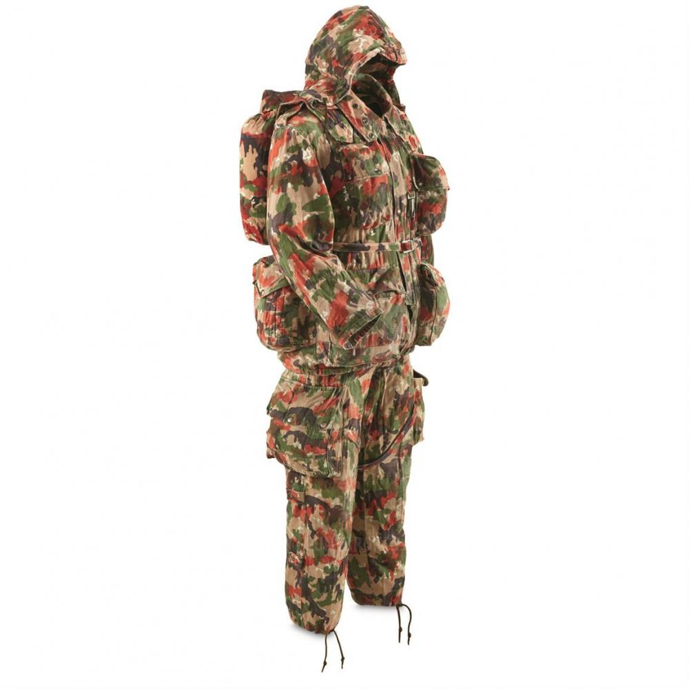 Огромный регулируемый капюшон с камуфлированной сеткой на лицо.