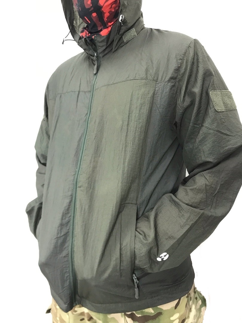 Куртка-ветровка для летней погоды из стопроцентного дышащего нейлона,также куртка облалает водоотталкивающими свойствами.На капюшоне и в нижней части куртки предусмотрена утяжка.