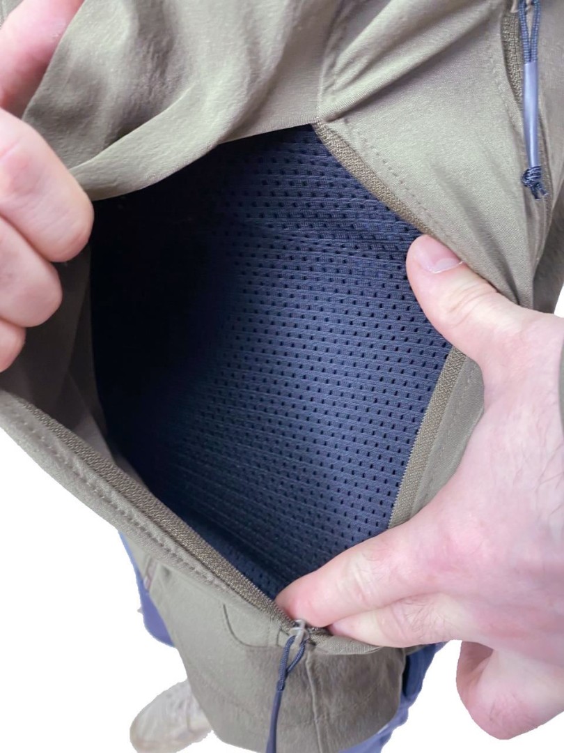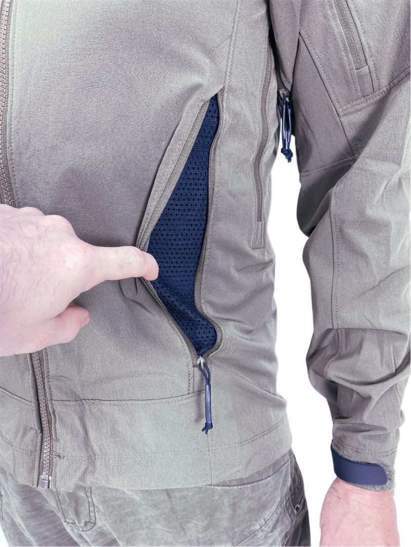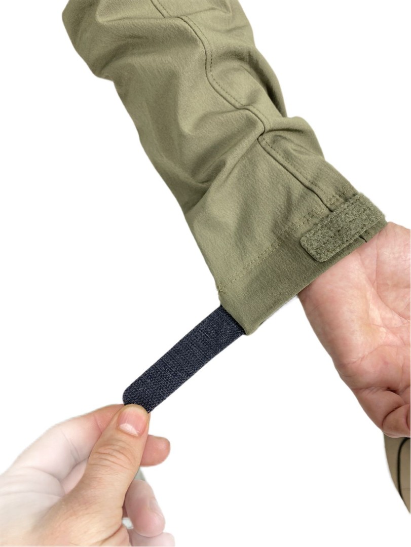 Панели велкро на рукавах с потайными карманами на молнии – быстрый доступ к мелочам и инструментам.