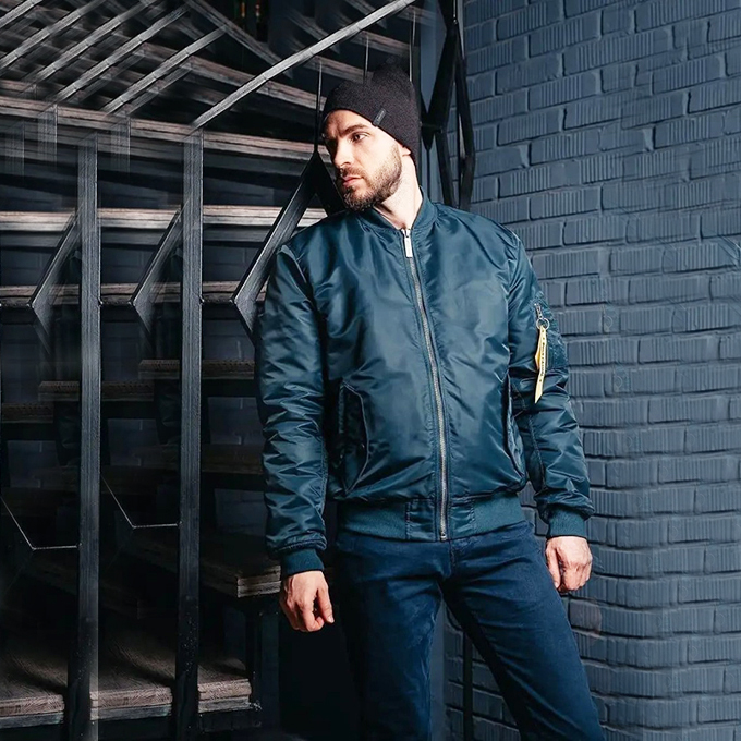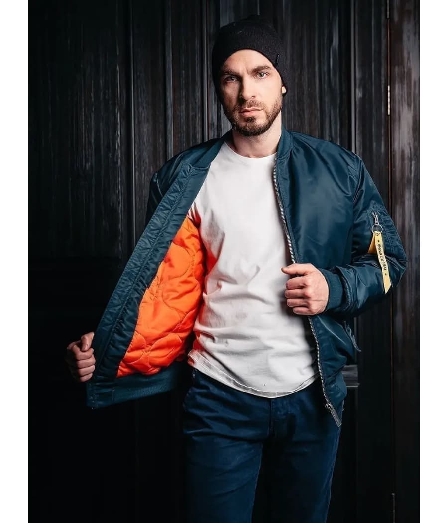 MA-1 Bomber bomber, navy — это сочетание военной эстетики и городской моды. Универсальный черный цвет и легендарный покрой делают куртку незаменимой частью гардероба каждого мужчины, который ценит стиль, удобство и качество.