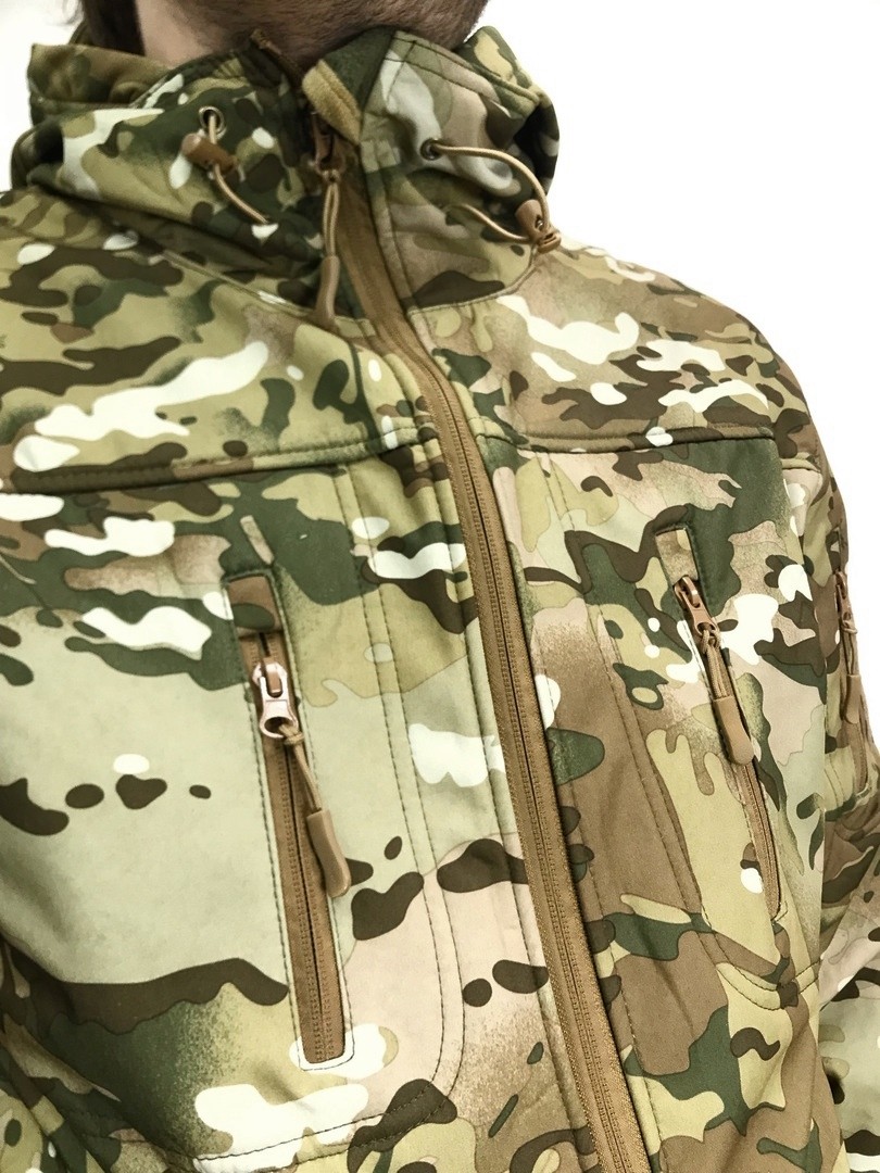 Куртка Softshell мультикам. Универсальная флисовая куртка предназначенная для тактических целей и ежедневного использования в сложных погодных условиях. Может использоваться как утепляющий слой или как внешняя одежда.