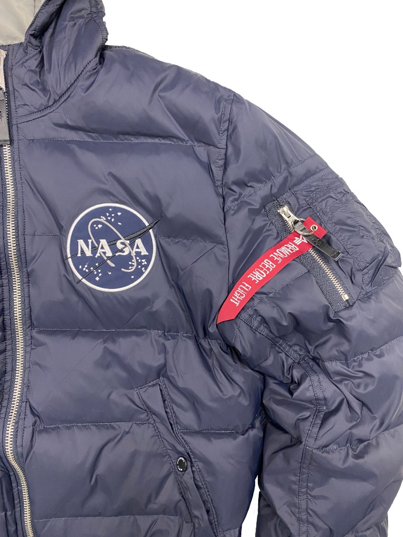 Она сочетает культовый стиль Alpha Industries, теплый пуховый утеплитель и узнаваемую символику NASA.