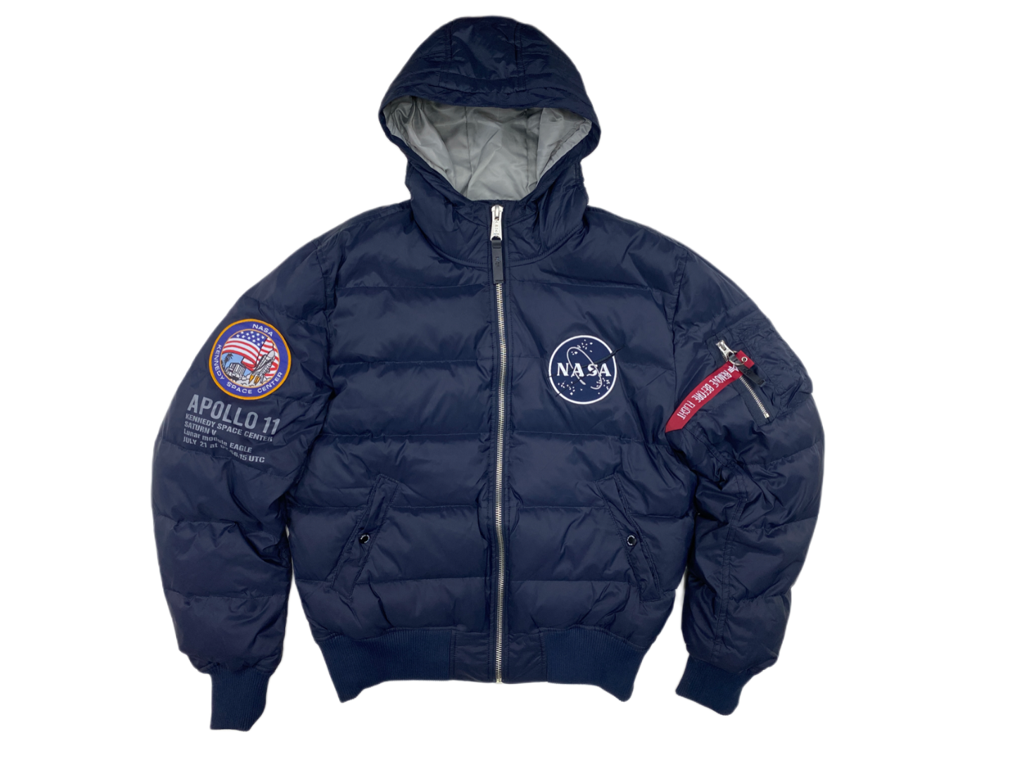 Куртка ALPHA APOLLO 11 Industries NASA — это уникальный пуховик-бомбер, вдохновленный легендарной космической миссией Apollo-11.