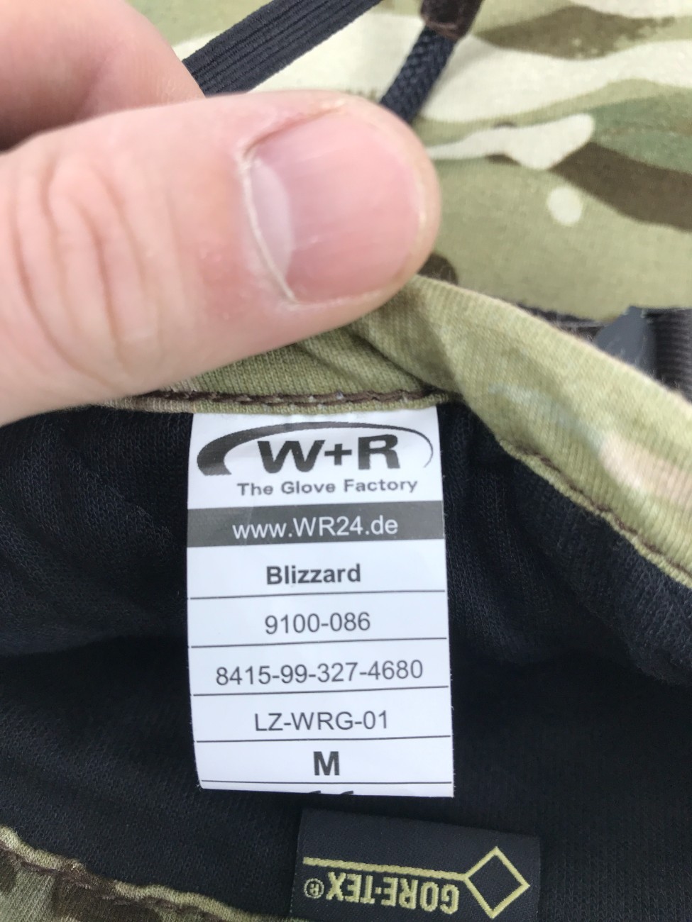 Изготовлены из влагостойкого материала, оснащены утеплителем и мембранной подкладкой Gore-tex. Область ладоней усилена кожей. Отдельное отделение для указательного пальца для стрельбы.