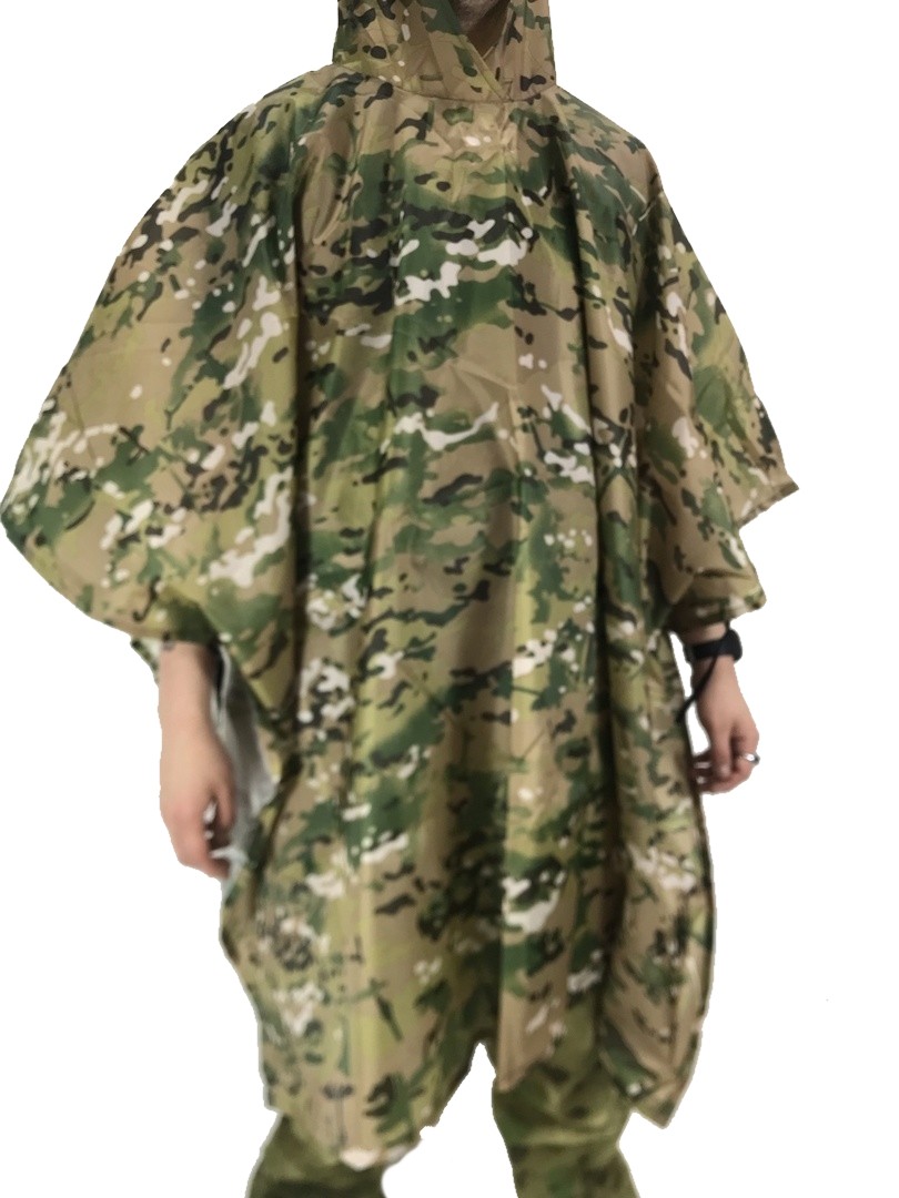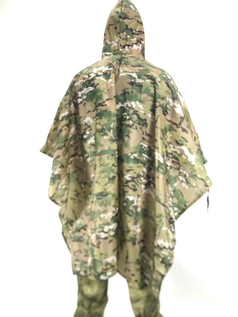 Влагозащитный плащ-пончо МУЛЬТИКАМ — это универсальная накидка для защиты от дождя, ветра, пыли и грязи с максимальным удобством. Свободный крой размером 142×211 см позволяет надевать его поверх верхней одежды, тактической экипировки и рюкзака, не ограничивая движения. Глубокий капюшон с шнурками-фиксаторами обеспечивает надежную защиту головы и шеи, а комплектный мешок с утяжкой позволяет компактно хранить и транспортировать пончо.