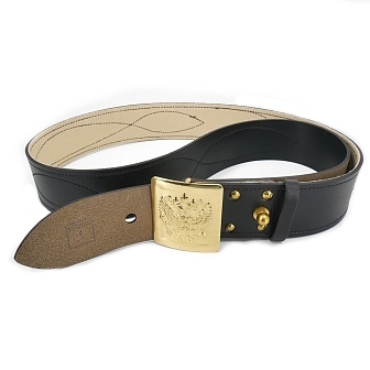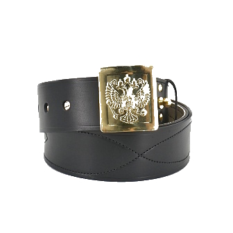 Классический прорезной ремень образца 1935 г., имеющий современную прорезную бляху с изображением российского герба в виде рельефного двуглавого орла с расправленными крыльями. Кожаный ремень удобно подгоняется под размер и не расслабляется при длительном ношении, позволяя носить большое количество амуниции и снаряжения. Современный дизайн, «золотая» пряжка, естественный блеск и легкая полировка. Черный ремень с гербом России является хорошим подарком и достойным пополнением тематической коллекции оригинальных армейских вещей