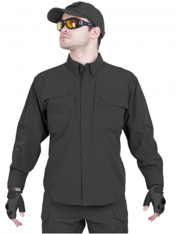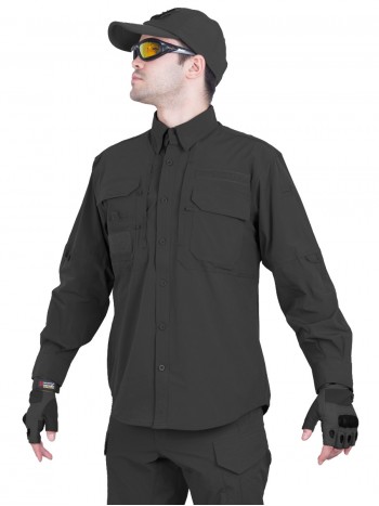 Легкая тактическая рубашка GONGTEX Traveller Shirt предназначена для активного ношения в городе и на природе. Модель изготовлена из 100 % полиэстера, ткань прочная, воздухопроницаемая и быстро сохнет. Дизайн рубашки оптимизирован для использования в тактической экипировке и повседневной носки: рукава с регулировкой длины, два нагрудных кармана с клапанами, усиленные плечевые и локтевые зоны для долговечности. Низ рубашки прямой, подходит для ношения как заправленной, так и навыпуск.