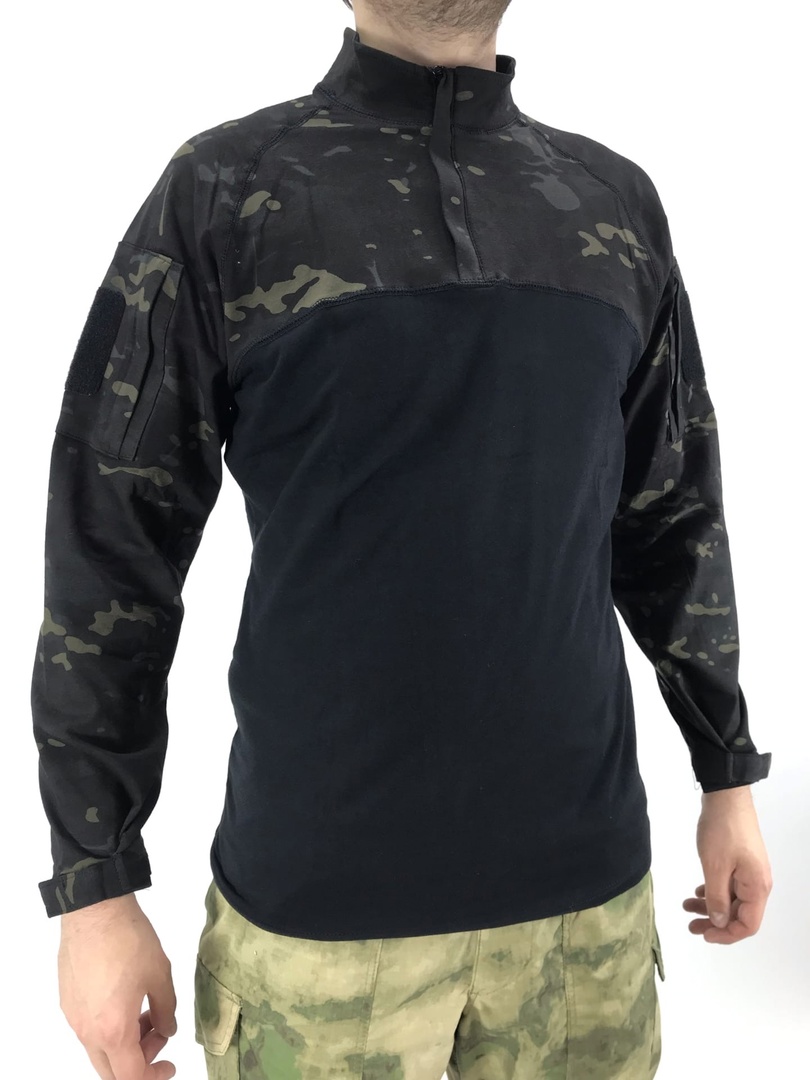 Военная рубашка боевая черный мультикам – это модификация классической тактической рубахи под бронежилет в стильном черном цвете. Камуфляжная ткань, как и в аналогичных моделях – на рукавах и груди.