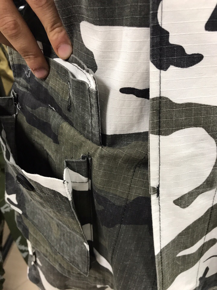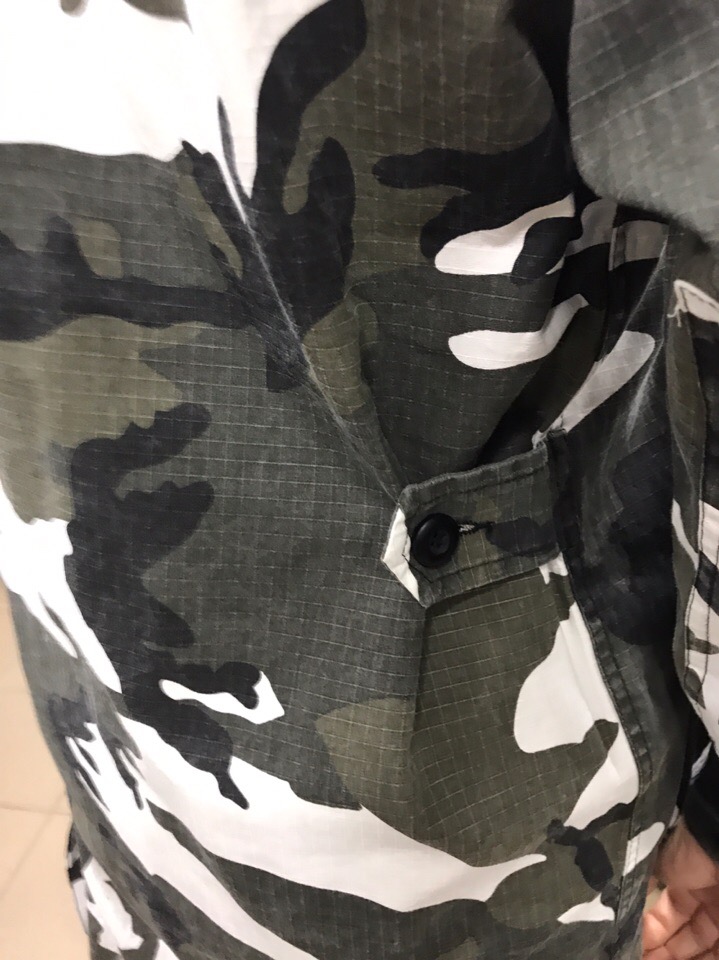 Униформа застегивается на ряд пуговиц, покрытых полосой материала. Модель имеет 4 внешних кармана, скрепленных язычком. Регулировка манжет на рукавах позволит нам регулировать их ширину в зависимости от запястий или ситуаций