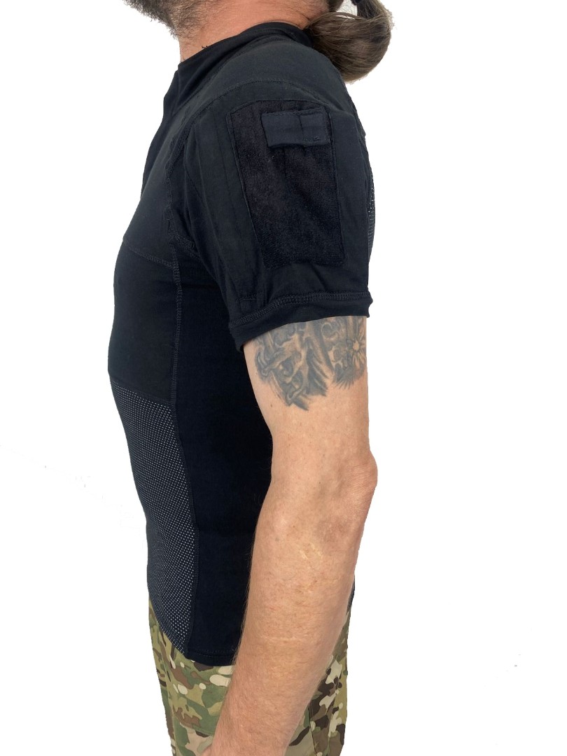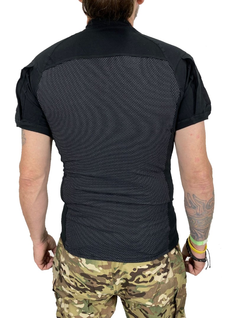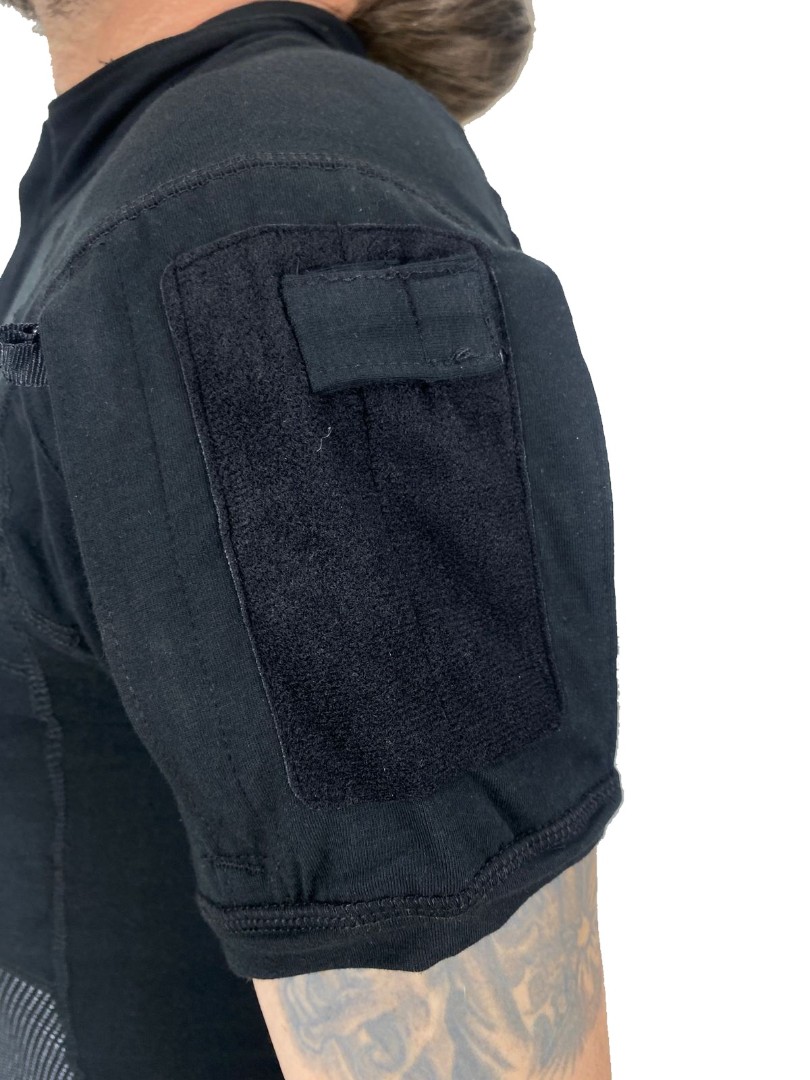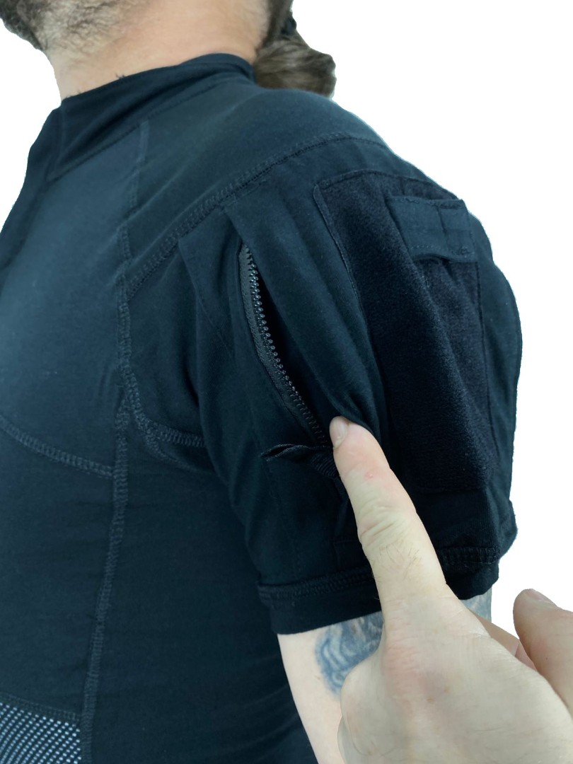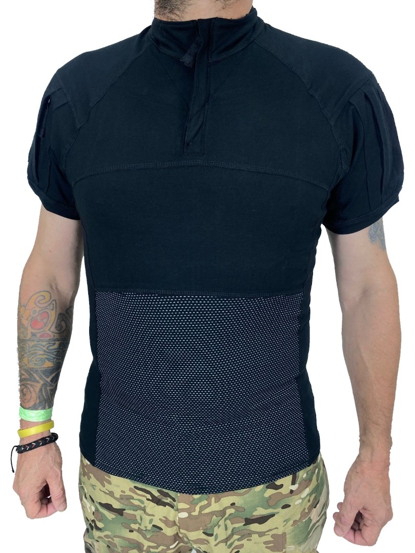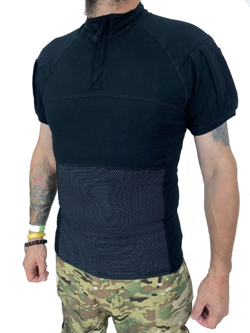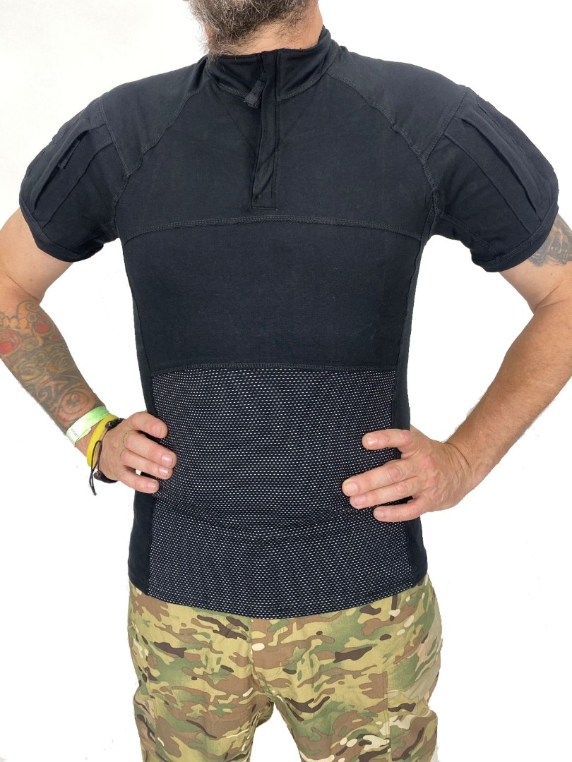 актическая футболка для жаркого сезона — универсальная, удобная и функциональная. Эластичный воротник-стойка плотно облегает шею, защищая от пыли и грязи. Удобная нагрудная молния длиной 15 см облегчает надевание, а скрытая тканевая планка предотвращает натирание подбородка. Практичные элементы включают: велкро на рукавах для патчей и скрытые карманы на молнии для мелочей.